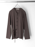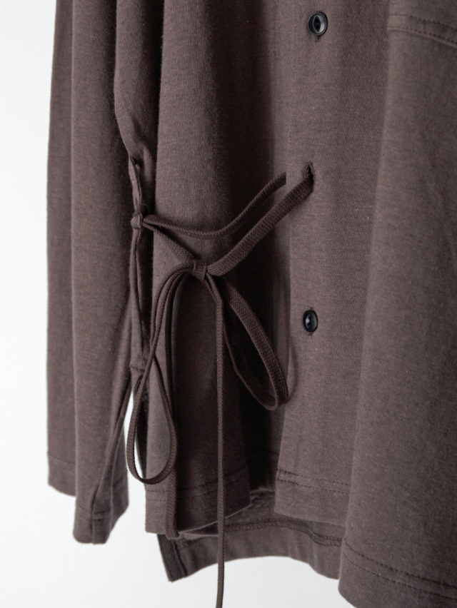 シルエットは程よくゆとりを持たせたリラックスフィット。オリエンタルな空気感を漂わせるVネックデザインにより、一枚でさらっと羽織る着こなしから、サイドに配されたテープを留めた和のニュアンスを感じるスタイルまで、幅広いアレンジが可能です。