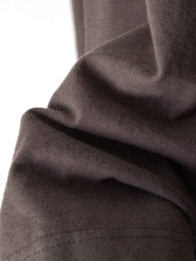 素材にはベルギーリネンを使用した天竺生地を採用。リネン特有のナチュラルなムラ感と、さらりとしたタッチが心地よく、奥行きを感じさせる味わい深い表情が特徴です。通気性にも優れ、季節を問わず快適に着用いただけます。