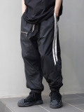 左側面にはポケットの入り口部分から膝下の切り替え部分まで2本のラインをテープ状に縫い付け、右腿にはANEIの"A"をイメージした切り替えが印象的なパッチポケットを配備。ポケット口と裾口のファスナーにはオリジナルの引手を採用するなど、細部まで工夫が凝らされたアイテムです。
