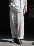 春夏シーズンらしく素材にヘンプを混ぜ軽めのサラッとしたタッチに仕上げたISLE SLACKS。ANEIで高い人気を誇る定番シルエットは、ゆとりのある腰周りから裾にかけての弱テーパーラインで構成され、"万能ワイドパンツ"と呼ぶに相応しい完成度を誇ります。
