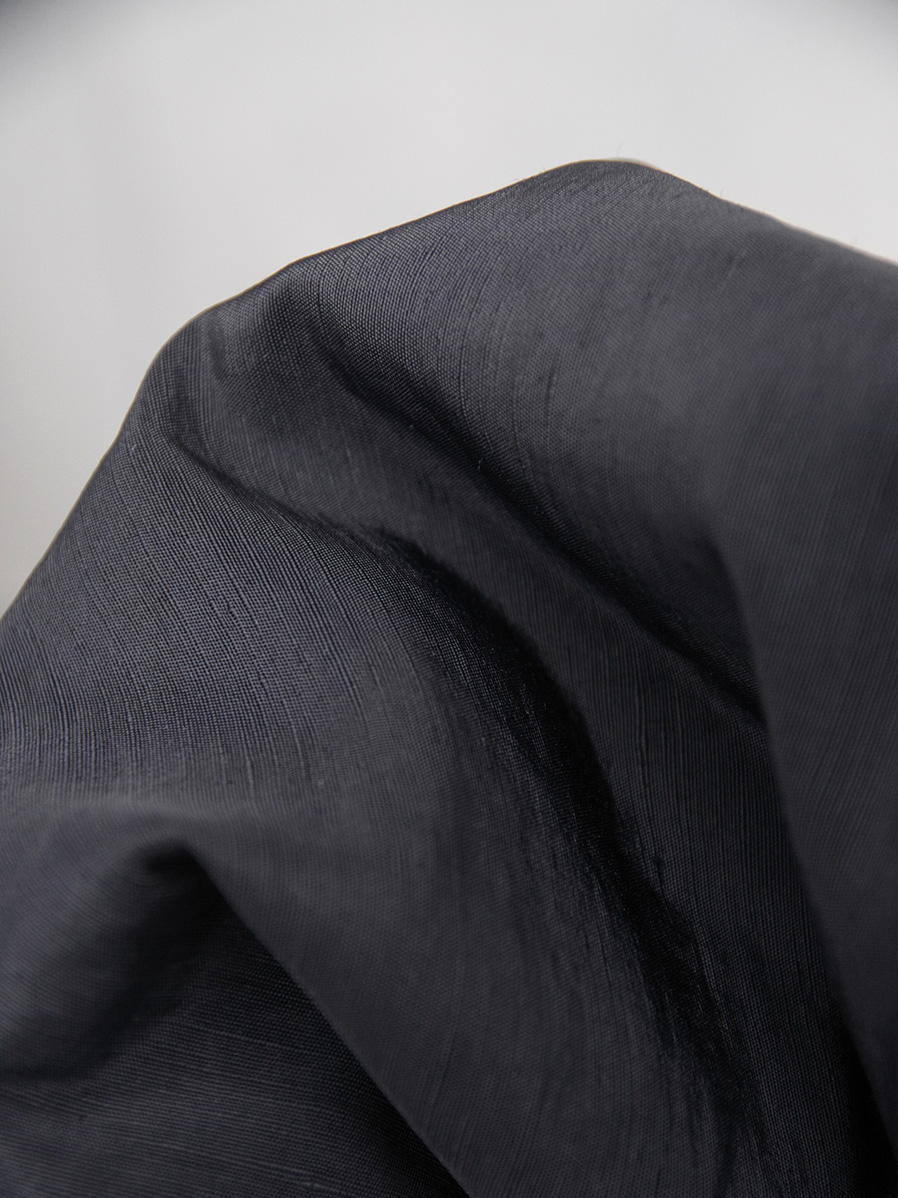 ナイロンの耐久性と程よい光沢に加え、リネン特有の不均一な糸形状により立体感のある生地表面が特徴的です。最終工程で施された特殊加工により、触り心地もソフトな風合いに。