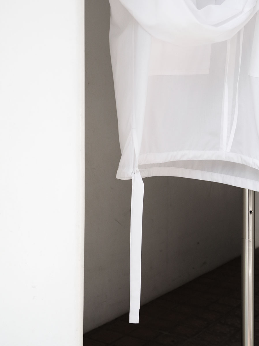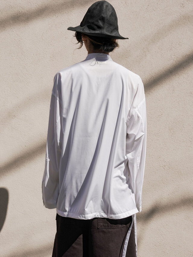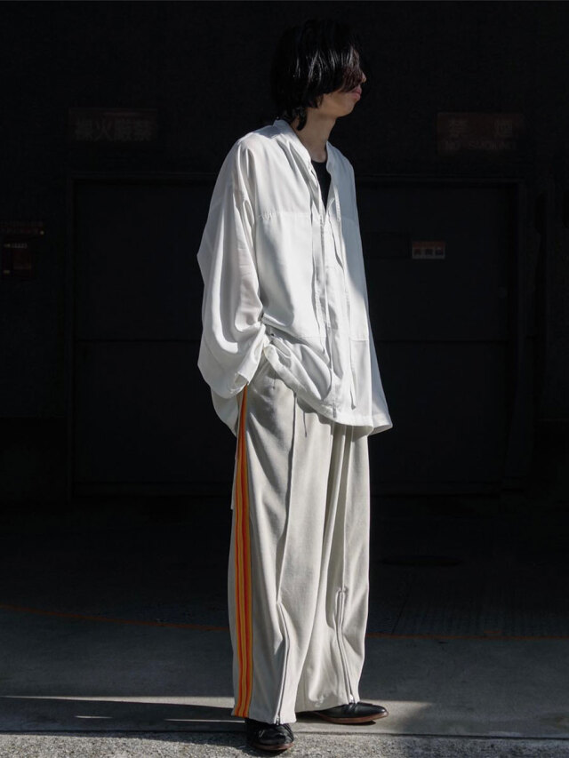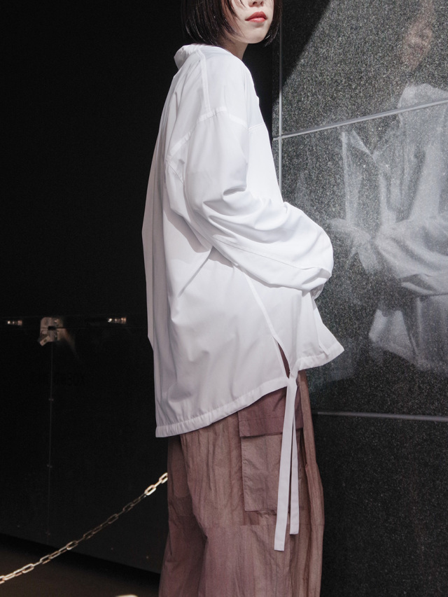 カフスは筒状にそのまま落とすか、ぐるっと手首に巻いて溜まり感を出すか2WAYで楽しめる仕様。インナーにはタンクトップ、カットソーだけでなく、そのワイドなシルエットからシャツやサマーニットなどの上からもレイヤードが可能です。