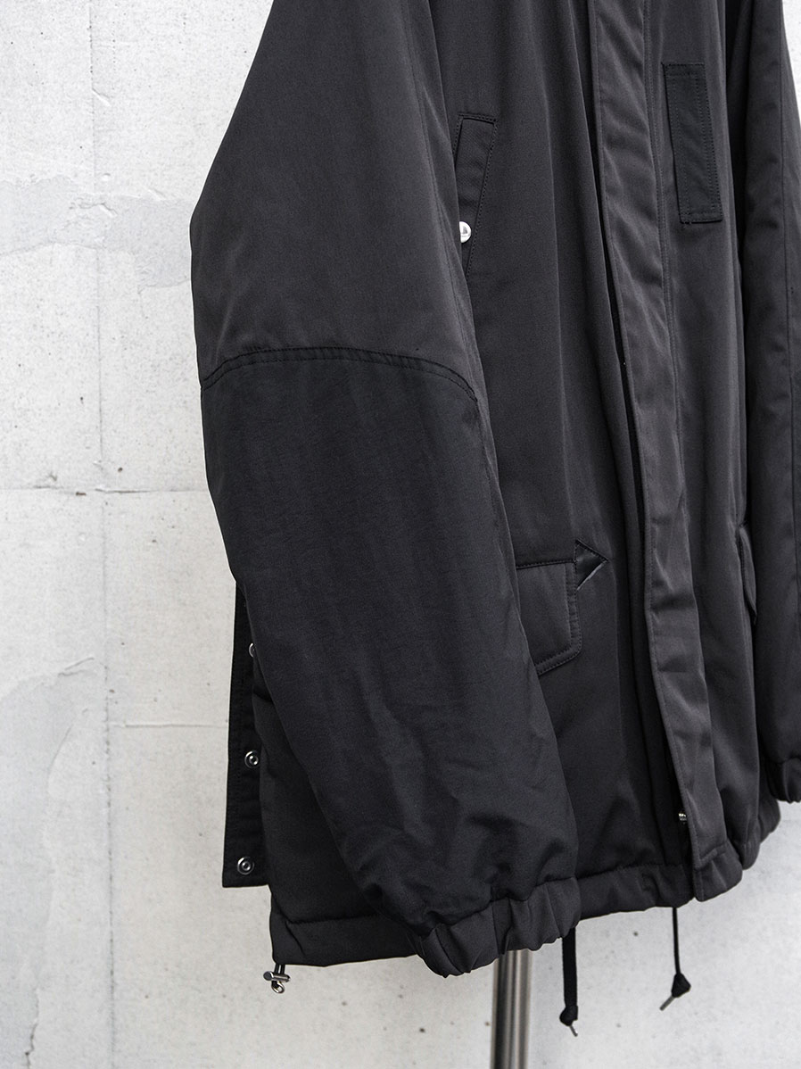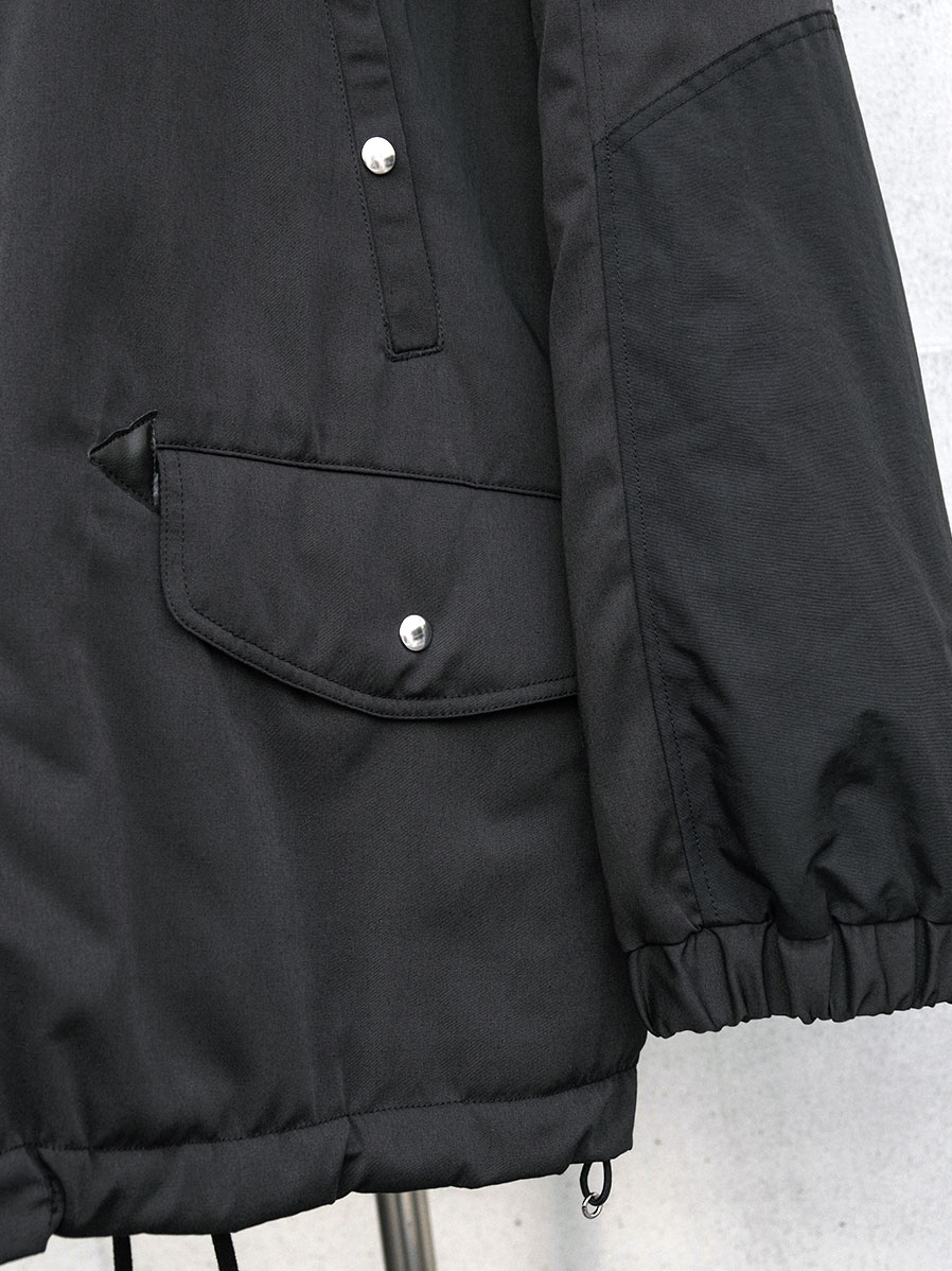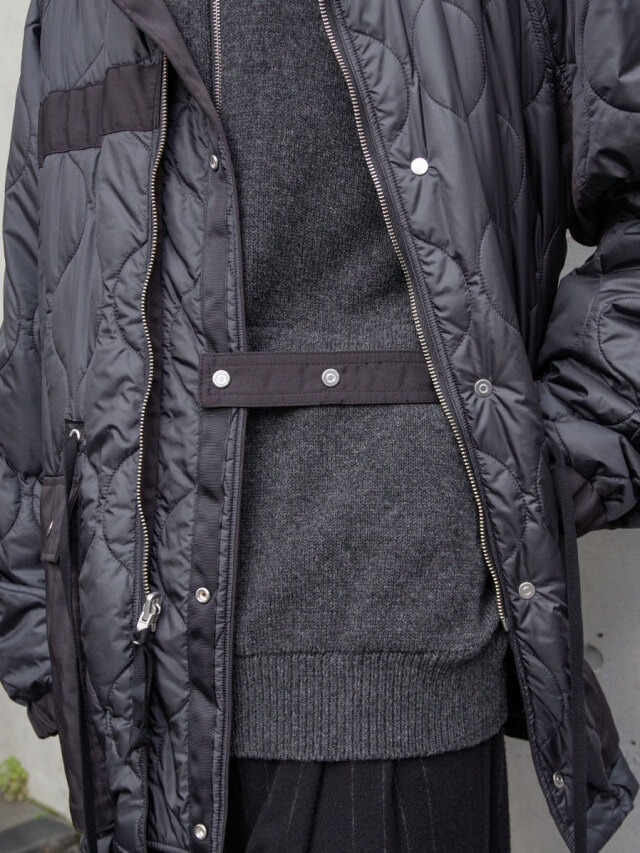The length strikes a careful balance—not too long, not too short—making it easy to wear like a lightweight half-coat. Adjustable cords at the waist and a spindle-and-stopper system at the hem allow you to customize the silhouette for added versatility. This parka perfectly blends the functional beauty of military design with the refinement of modern tailoring, making it a standout piece for the FW season.