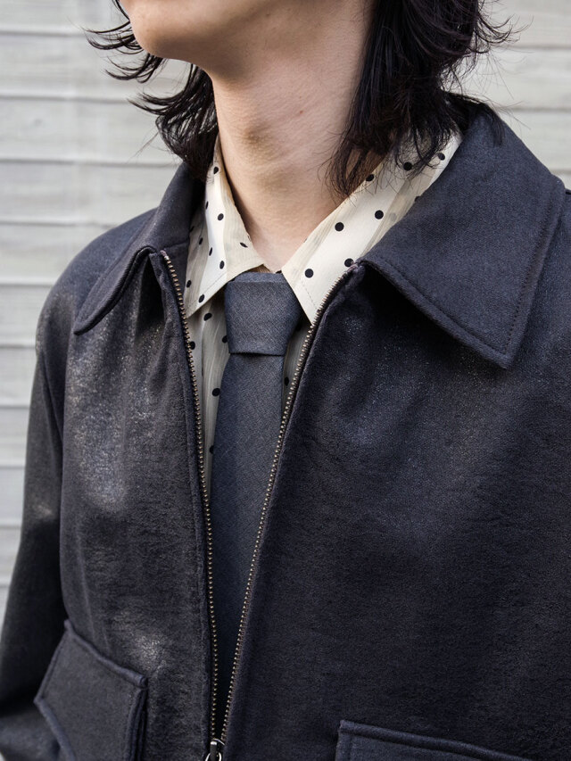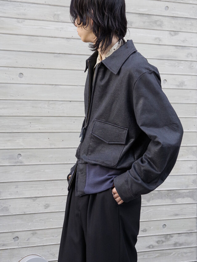 Set at a regular length, the jacket naturally blouses at the hem when zipped, creating a balance that feels classic yet contemporary. Opening the hem zippers allows for an A-line silhouette, while wearing it open offers a relaxed layering option.