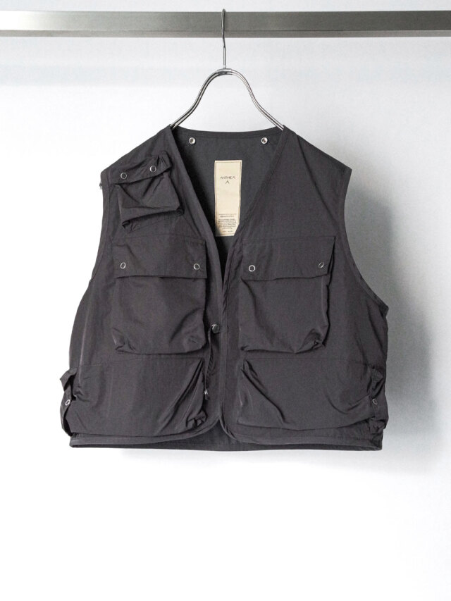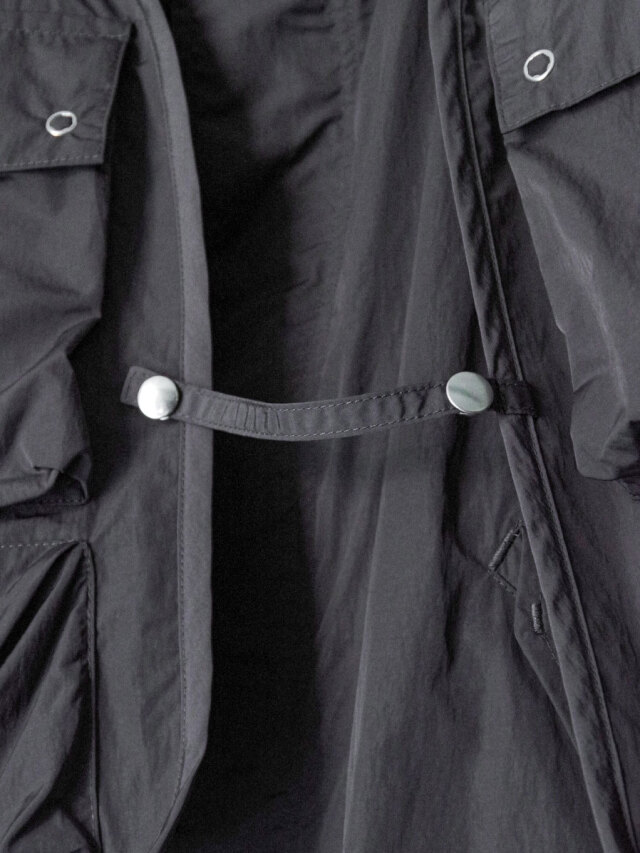 取り外し可能なベストは、US ARMY AIR FORCEのC-1ベストをベースにデザインされており、ミリタリー由来の機能美を現代的に再解釈しています。重ねて着用した際の奥行きある表情はもちろん、気候やスタイルに応じて多彩な着こなしが可能です。