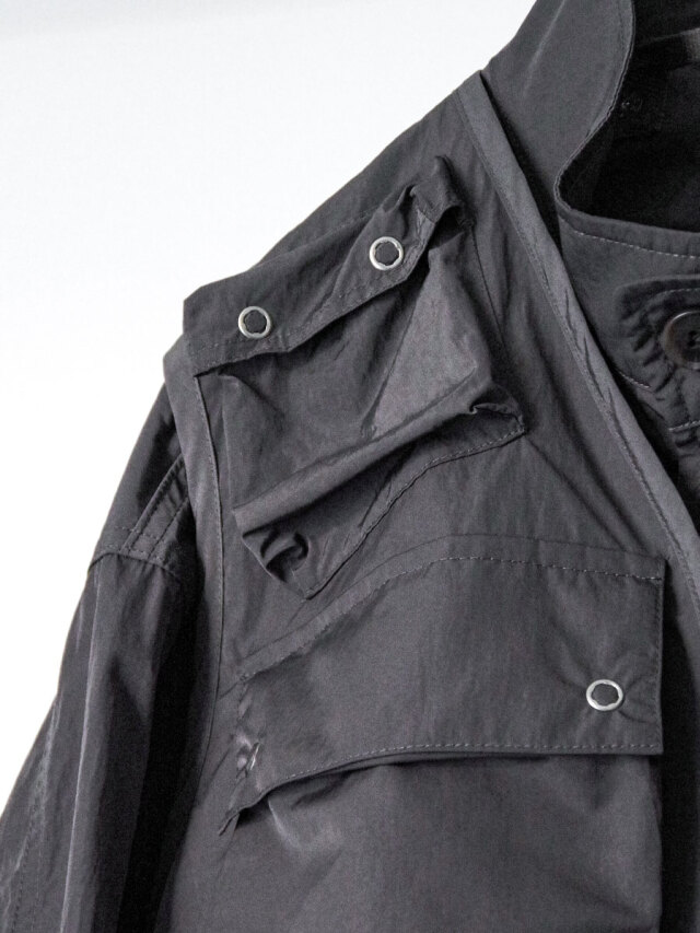 ミリタリーやヴィンテージの文脈を踏まえながら、現代的な感覚で再構築した一着。
