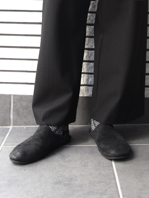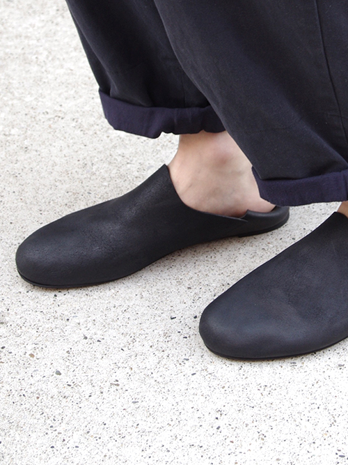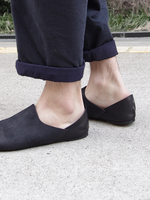 "「ルームシューズ」と銘打たれた、AUTTAAの名作、外履き用レザースリッポン"