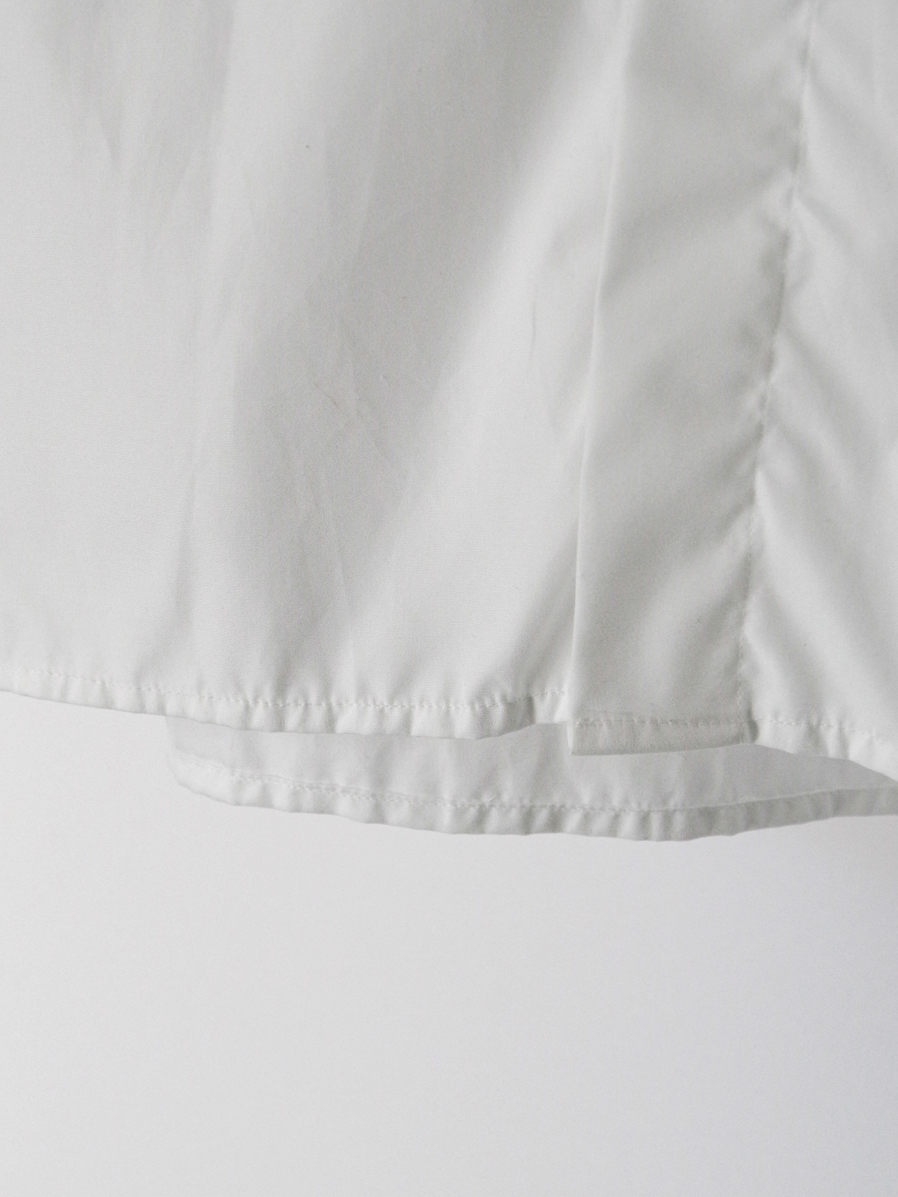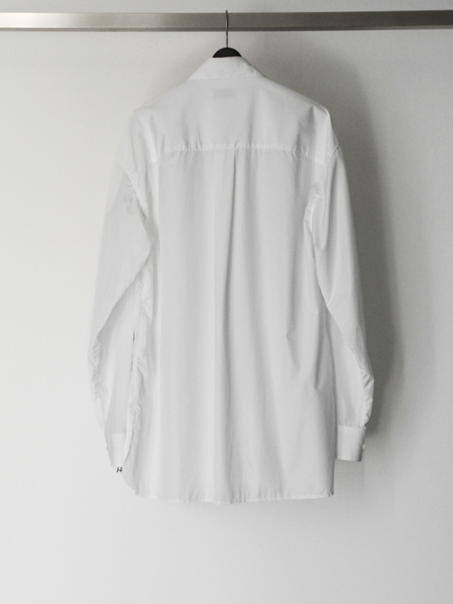 生地には、英国王室御用達として知られる老舗「THOMAS MASON(トーマス・メイソン)」のシャツ地を使用。世界最高峰とも称されるその高密度コットンを、あえてパッカリング(縫い縮み)が出るように縫製することで、ナチュラルな表情と奥行きのある仕上がりに。