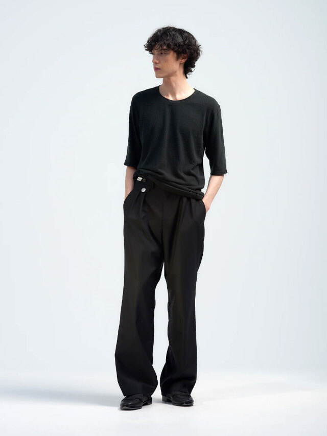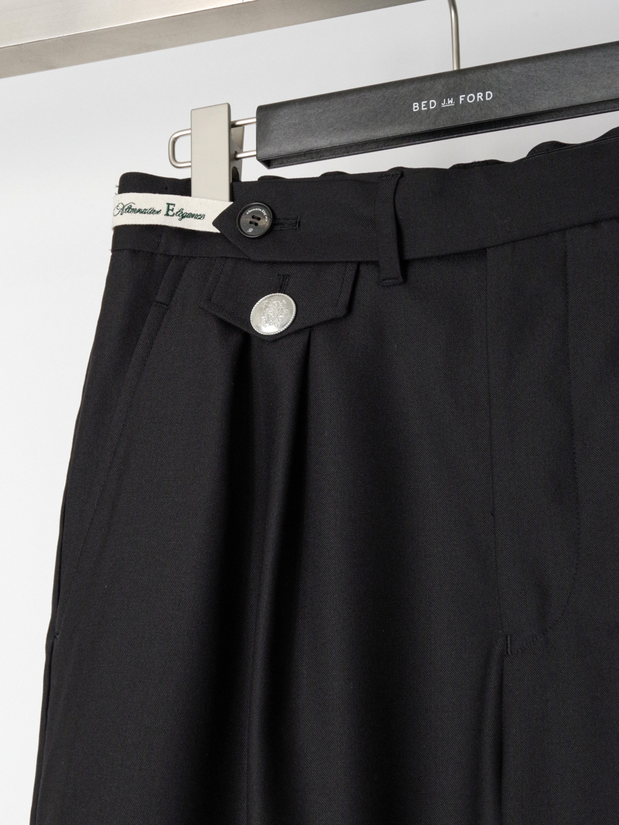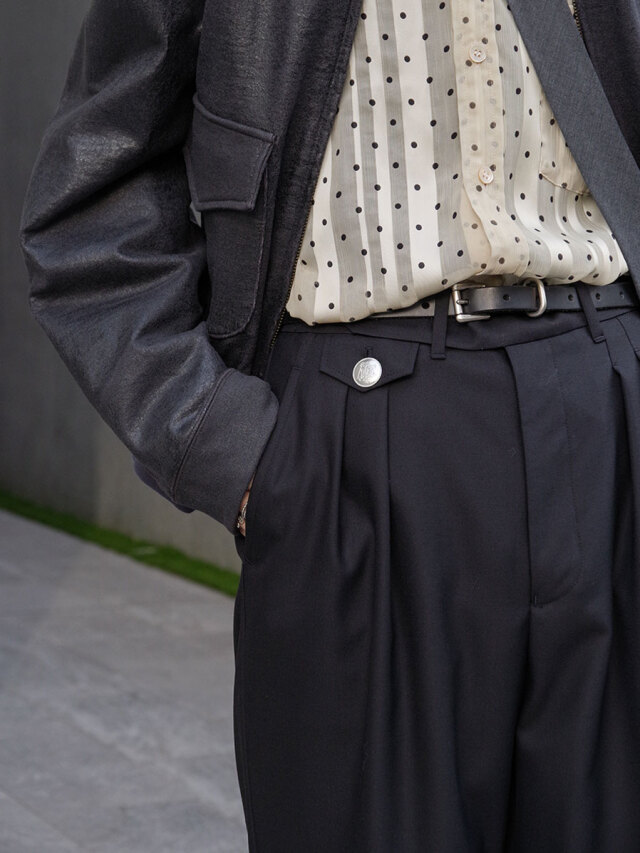 Front in-tucks add ease around the waist, allowing for relaxed wear while preserving a sharp, composed impression. The thoughtful waist detailing also makes the trousers ideal for tucked-in styling.