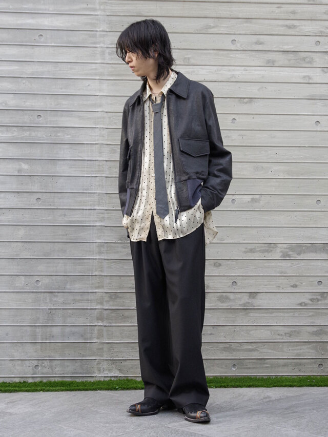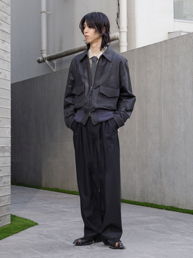 クッタリとした落ち感があり、生地特有の美しいドレープを楽しめます。シルエットの端正さを際立たせながら、柔らかな動きを加えてくれる素材です。