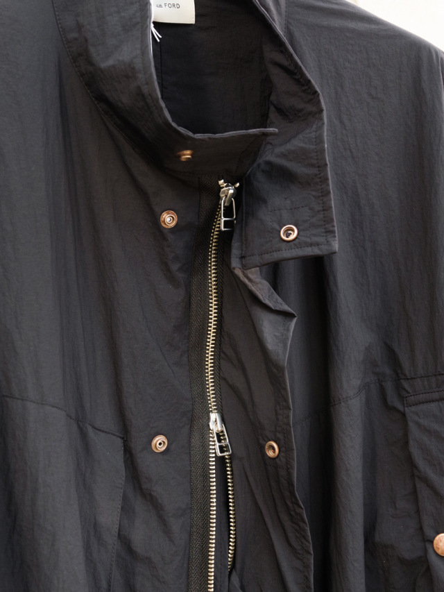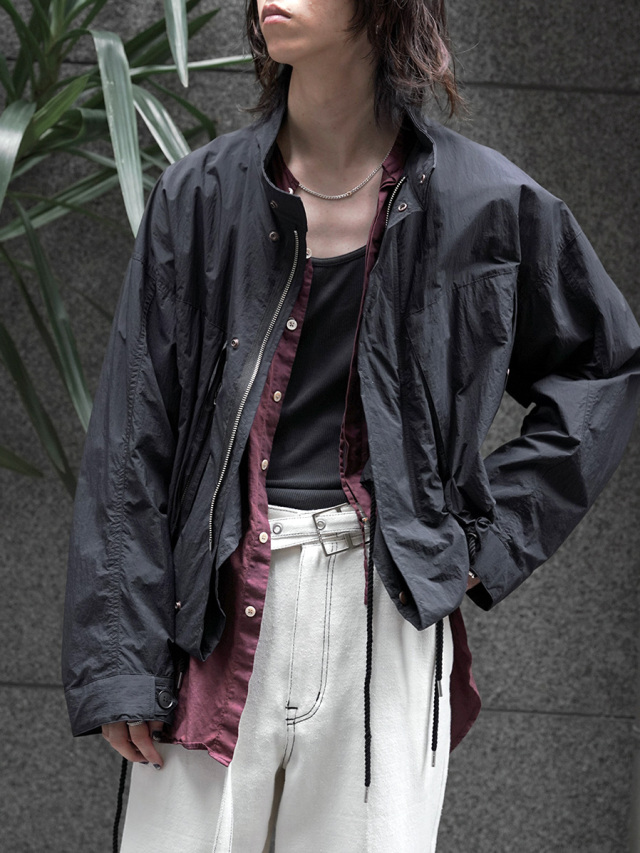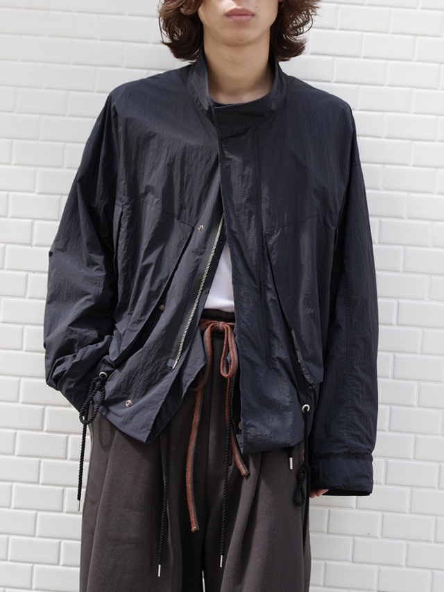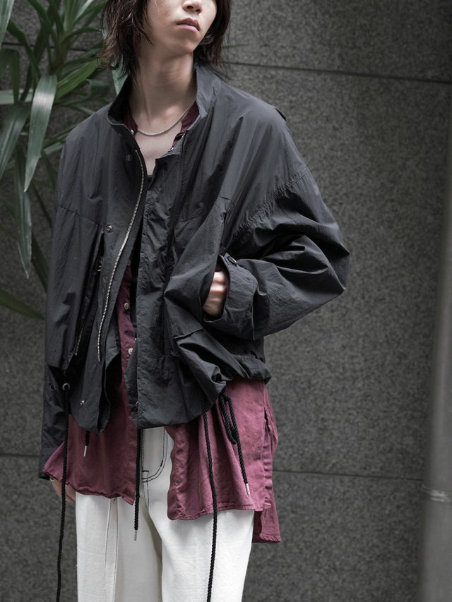 コンパクトな着丈に対して袖丈を長めにとることでメリハリの効いたシルエットに設定し、カットソーやシャツなどとのレイヤードを存分に楽しめます。ブルゾンながらもまるでドレスシャツのように優雅で気品さえ感じさせるアイテム。
