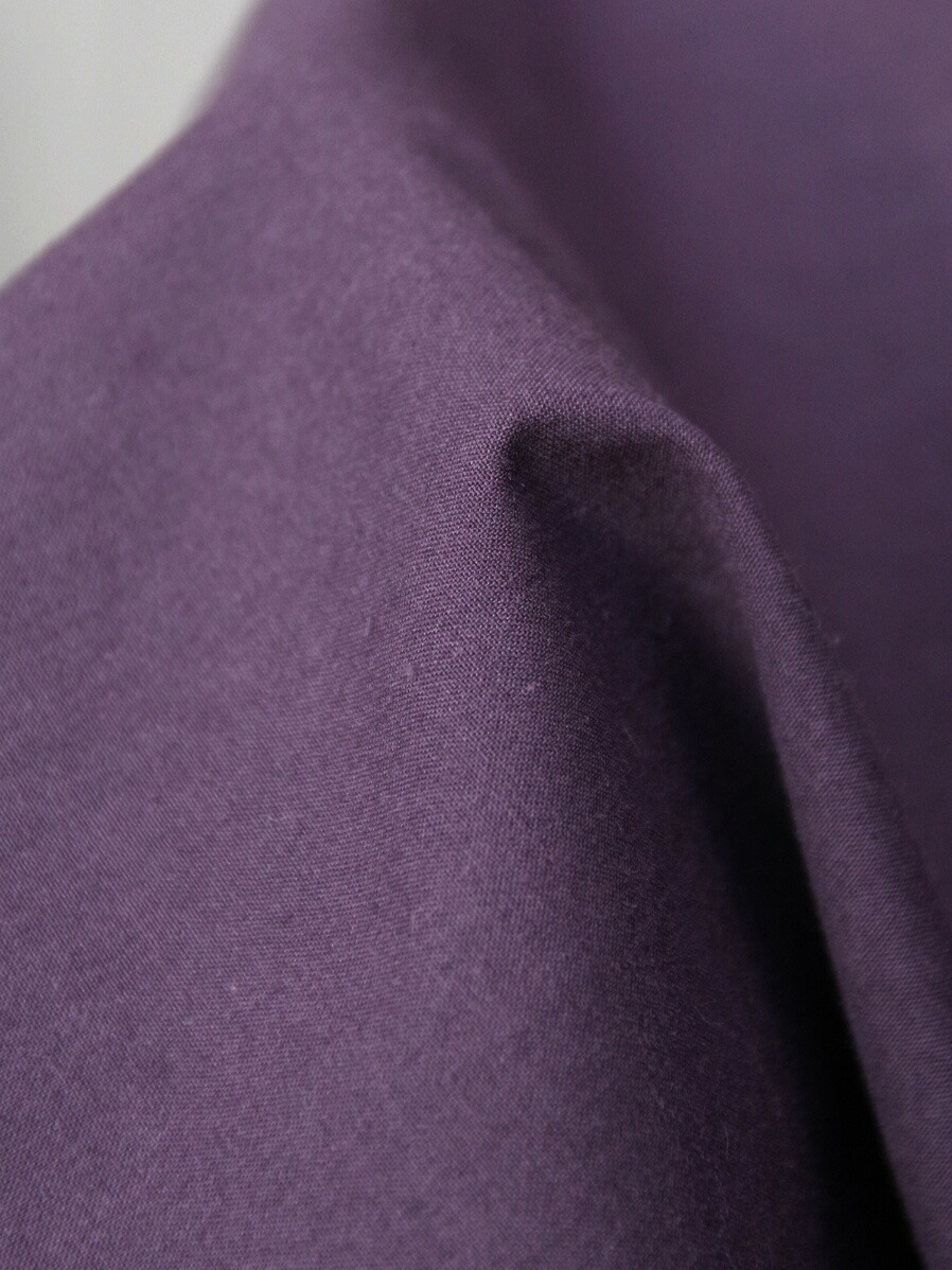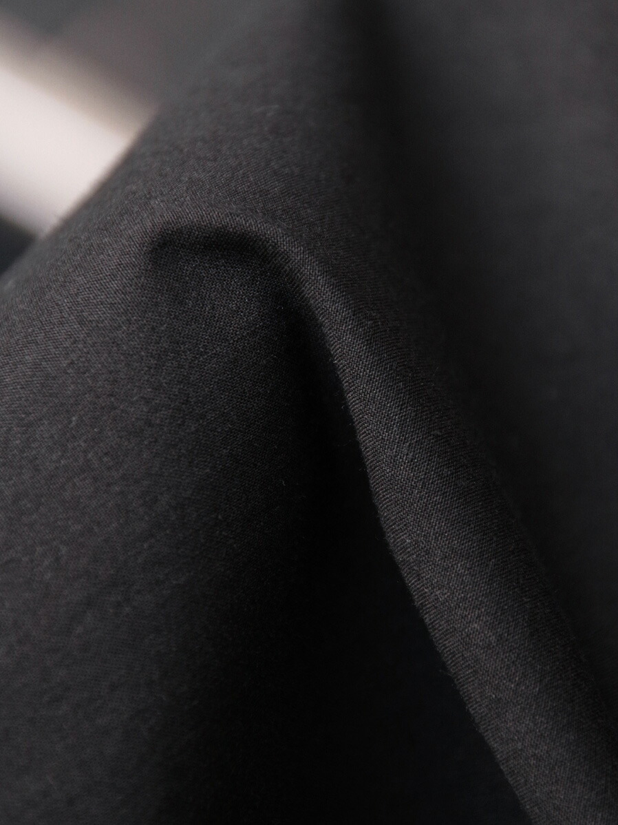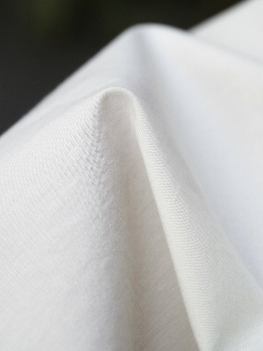 新たなコットンシルク素材は、混率を変え表情も一新させた生地になっています。従来のものよりもハリ感があり、シルク特有の光沢を乗せた上品な表情。質感からもタフさが増し、より長い期間で愛用いただける生地になっています。家庭での洗濯を可能とし、ケアの面も考慮された非常に使い勝手が良い点も。従来の生地同様、着用を繰り返すことで柔らかくなりつつも、部分的にネップが生まれ粗野な表情も共存する、経年変化もお楽しみいただけるテキスタイルです。