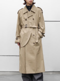 エポレットやスリーブストラップ、アンブレラヨークなどトレンチコートのディテールを各所に採用。着丈は長めに設定し、背面には深めにスリットを設け、縦のラインを強調。胸元の流麗なバイオリン型のフラップがより引き立てられた仕上がりです。