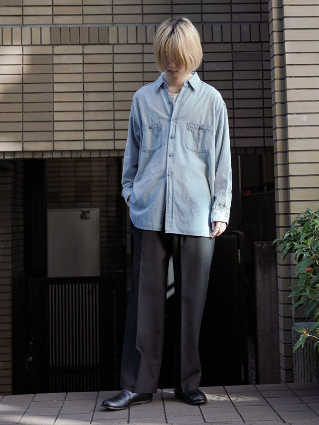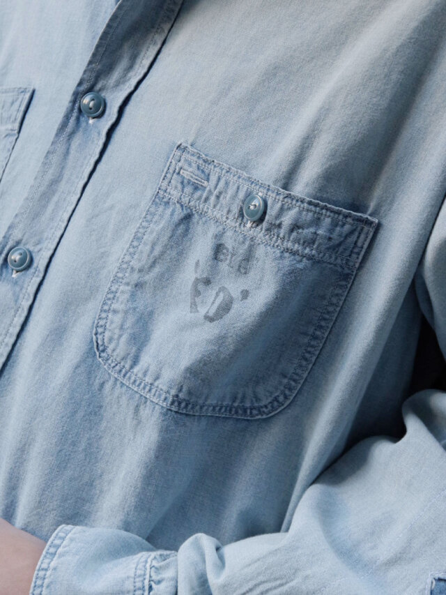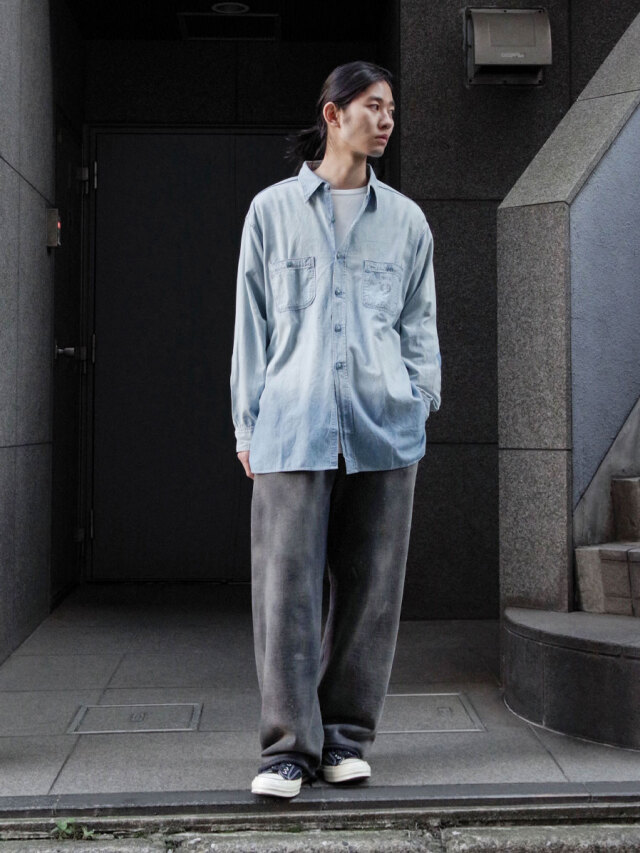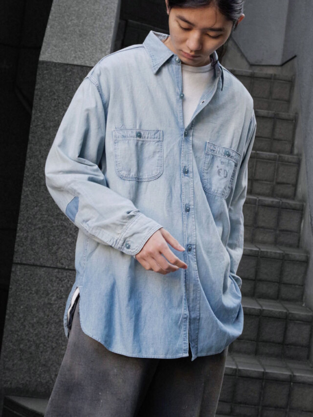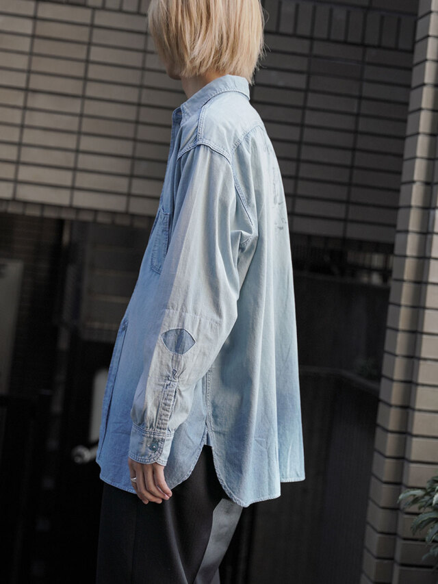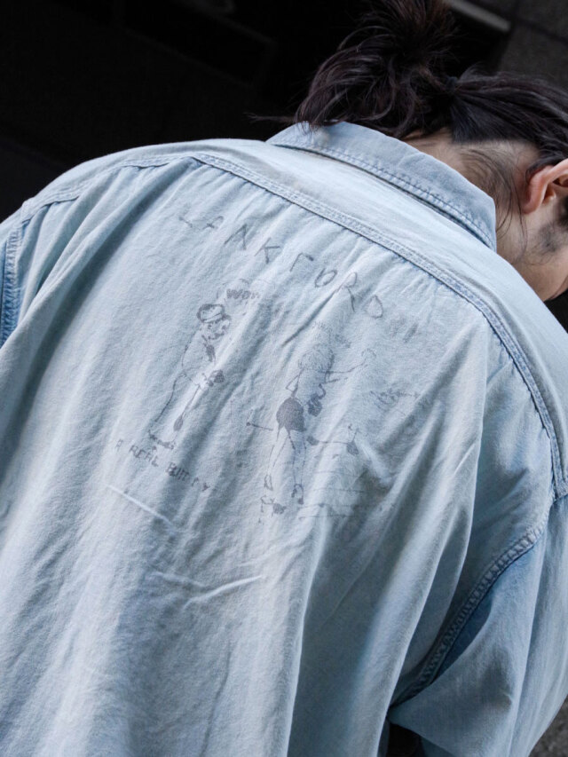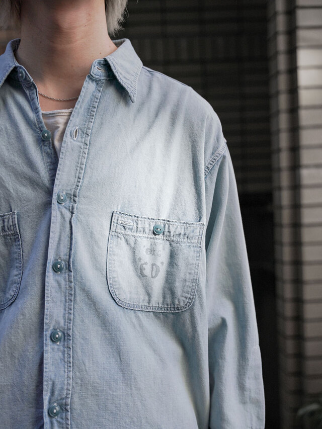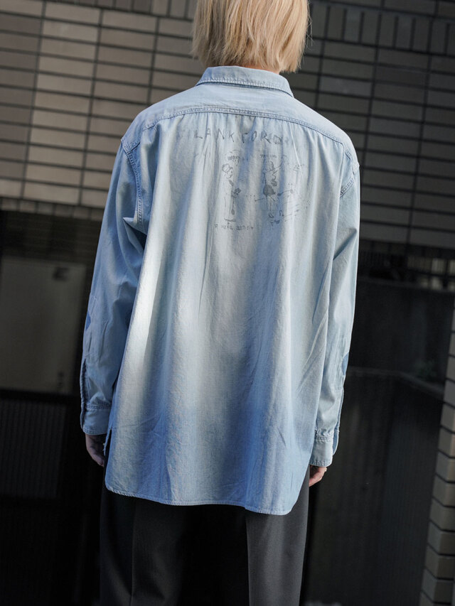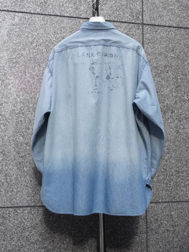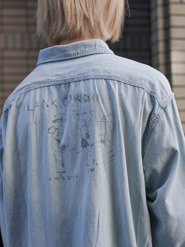 This item is based on a 40's US NAVY government-issued item that stands out in the vintage chambray shirt category. It incorporates a painted design that is said to have been hand-drawn by sailors at the time to depict how they felt when they arrived at the port, making it a work full of love.