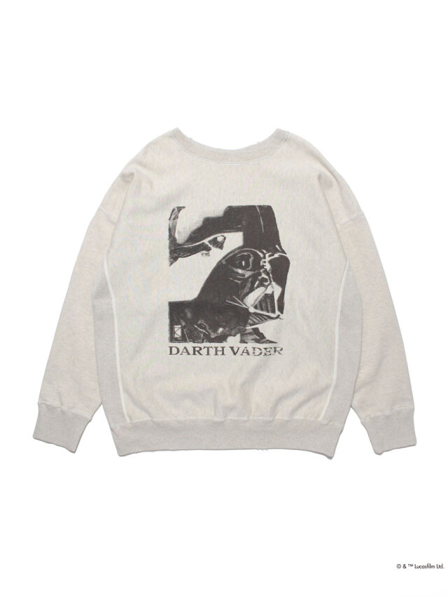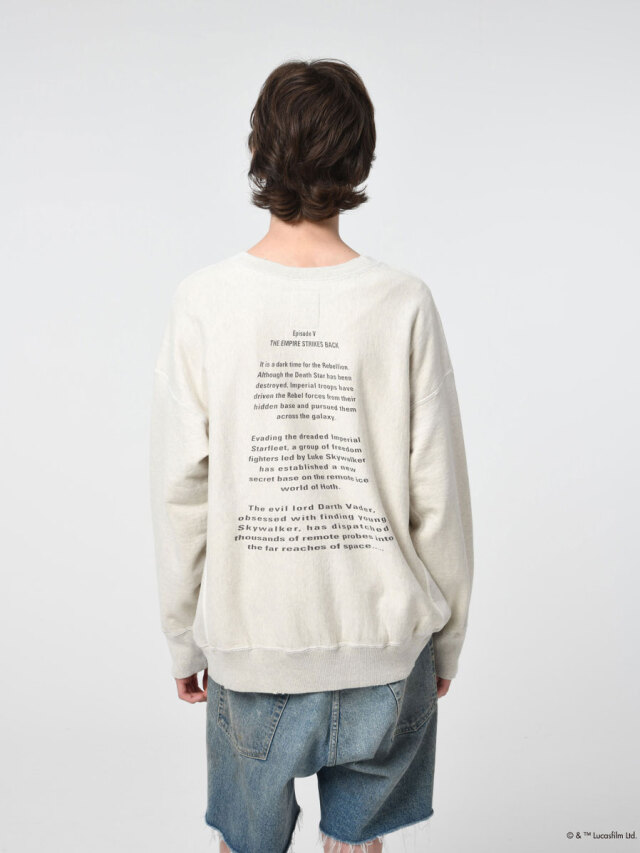 BOWWOWのスター・ウォーズコレクションより、60年代の手書きシルクプリント技法でダース・ベイダーデザインのスウェットが存在していたらと想像して制作された、ヴィンテージを愛するBOWWOWのダース・ベイダーデザインのスウェットが登場。ヴィンテージさながらの表情で仕上げたシルクプリントは、まるで使い古されたリアルヴィンテージのような風合いを持つスペシャルピースです。また、バックプリントには『スター・ウォーズ/帝国の逆襲 (エピソード5)』のストーリーが描かれており、ファンにはたまらないアイテムとなっています。まるで60年代のスター・ウォーズグッズを見ているかのような懐かしさと特別感を持つデザインです。
