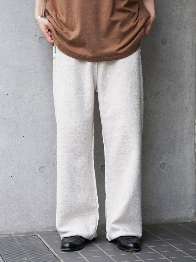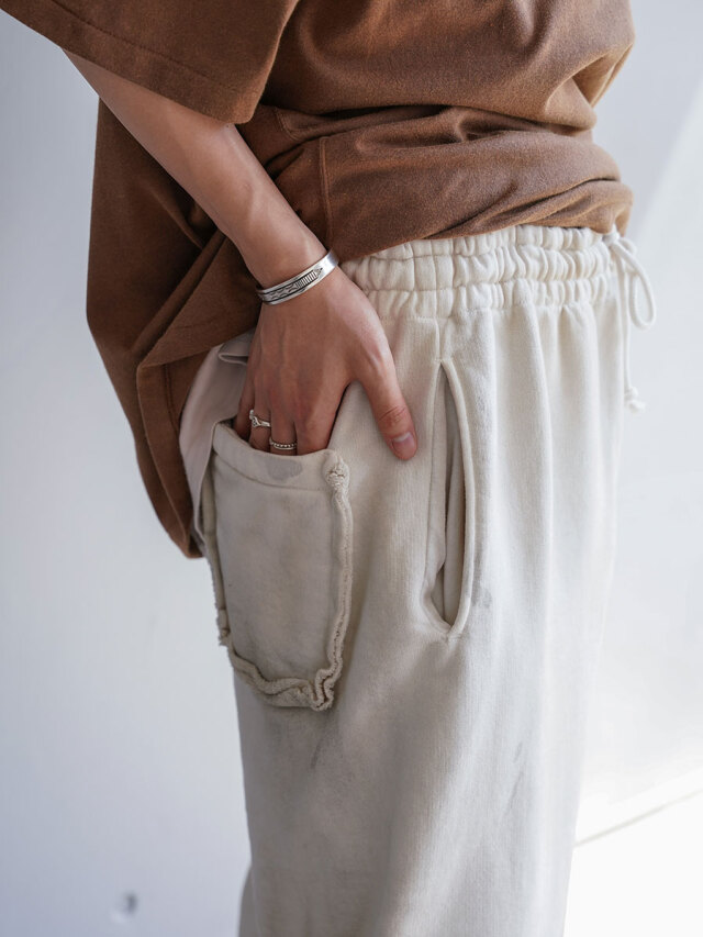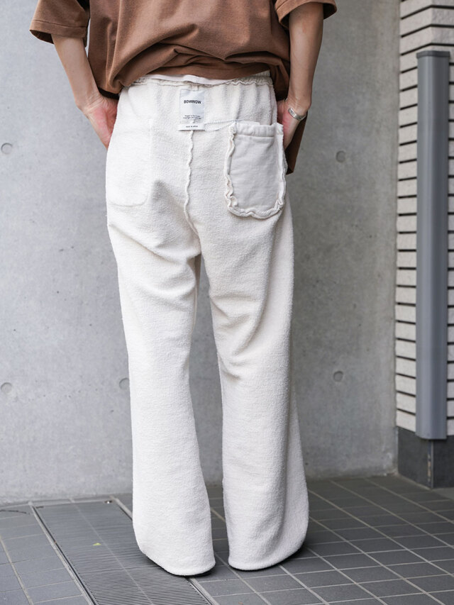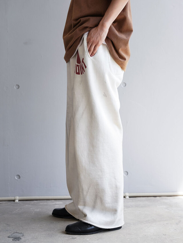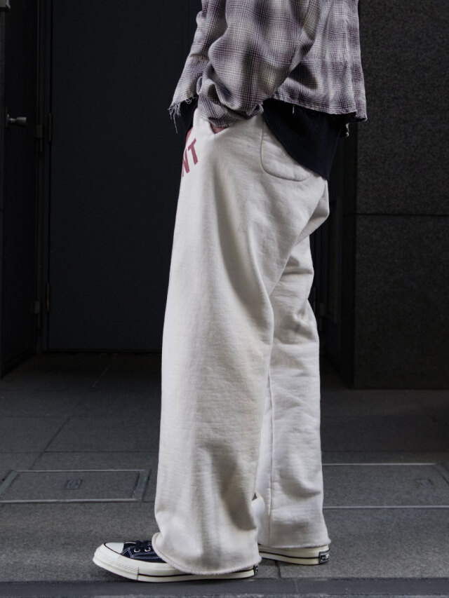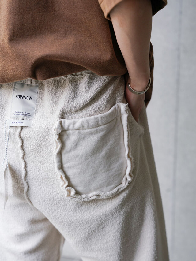 These sweatpants are made with a genuine vintage finish, symbolizing BOW WOW. They are made with a high-ounce original fleece material, and the heavy feel of the tight weave and the soft texture of the processing combine to create an exquisite fit.