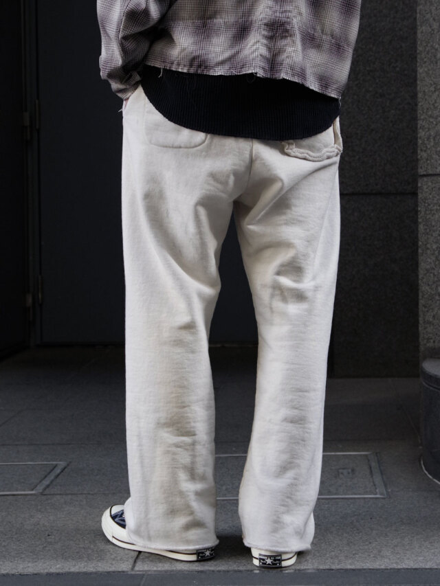 BOW WOWを象徴する、本気のリアルヴィンテージ加工が施されたスウェットパンツ。高オンスのオリジナル裏毛素材を採用し、度詰めならではの重厚感と、加工による柔らかな風合いが共存する、極上の着心地に仕上げられています。