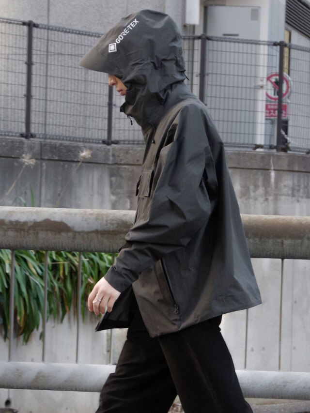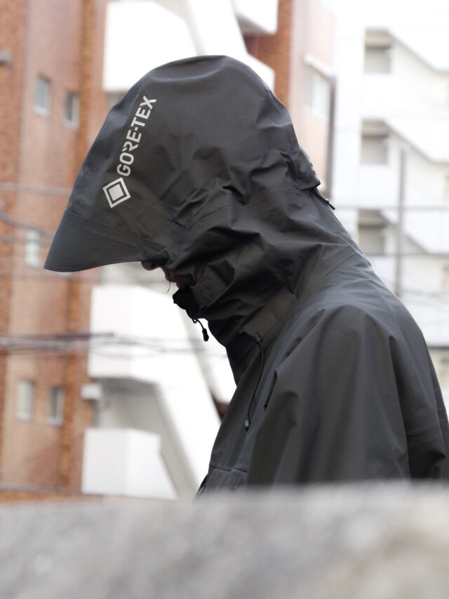 フォルムはアメリカ軍のレインブルゾンをベースに設計され、素材には3レイヤー系素材で圧倒的な最強レベルを誇るGORE-TEX PRODUCTを使用。