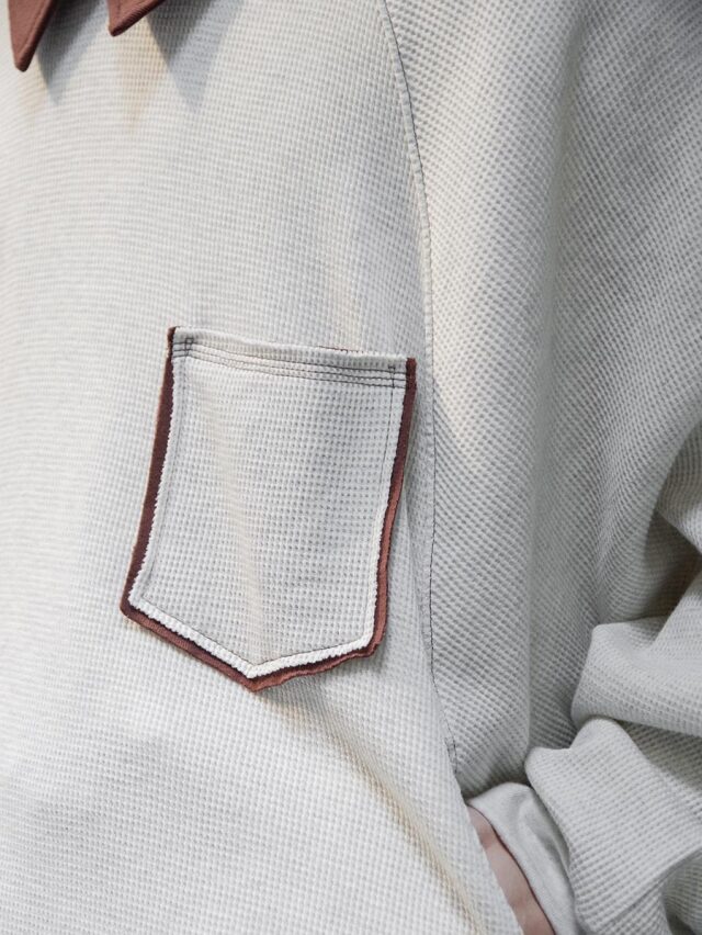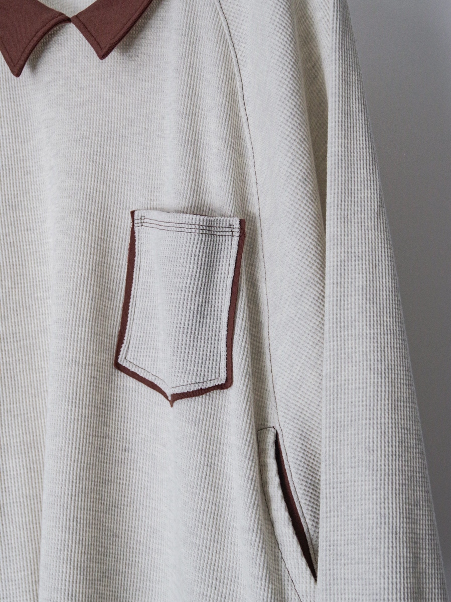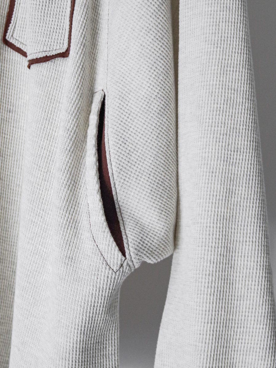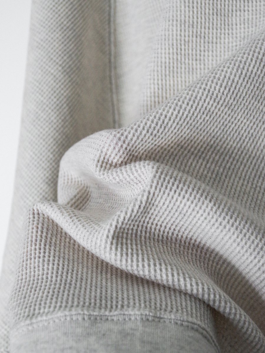 Made from a soft and comfortable waffle fabric, it offers the versatility of both a cut-and-sew top and a lightweight sweatshirt. The relaxed drape of the fabric creates subtle movement, allowing for an effortless and nuanced look.