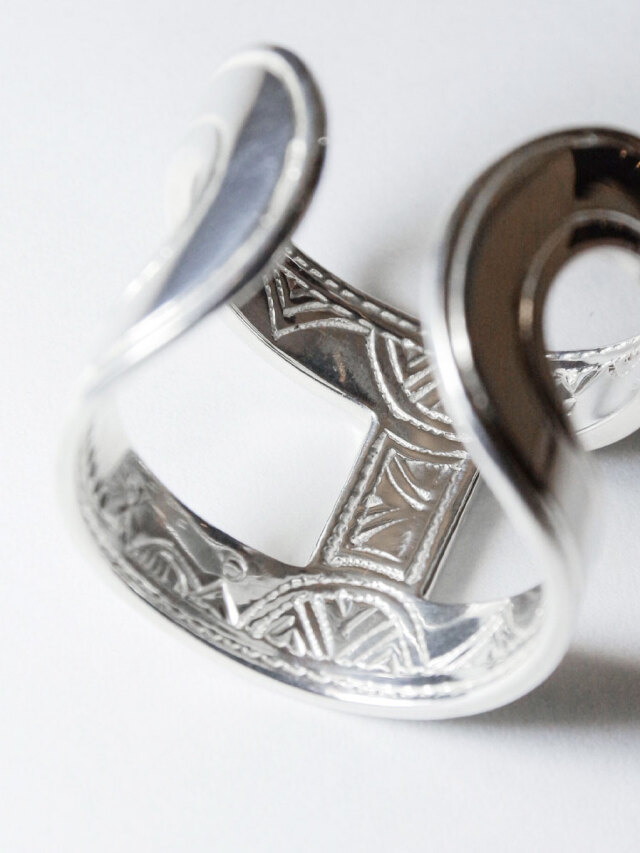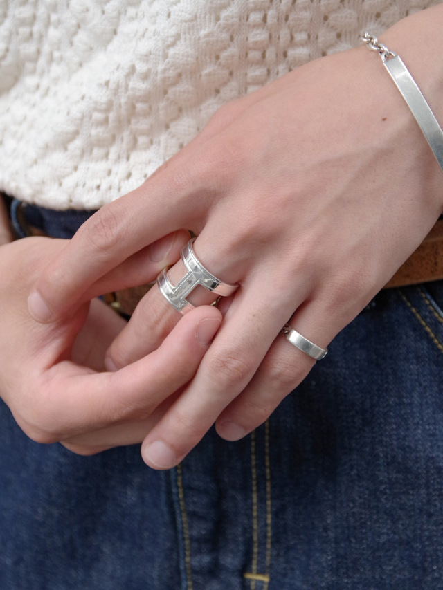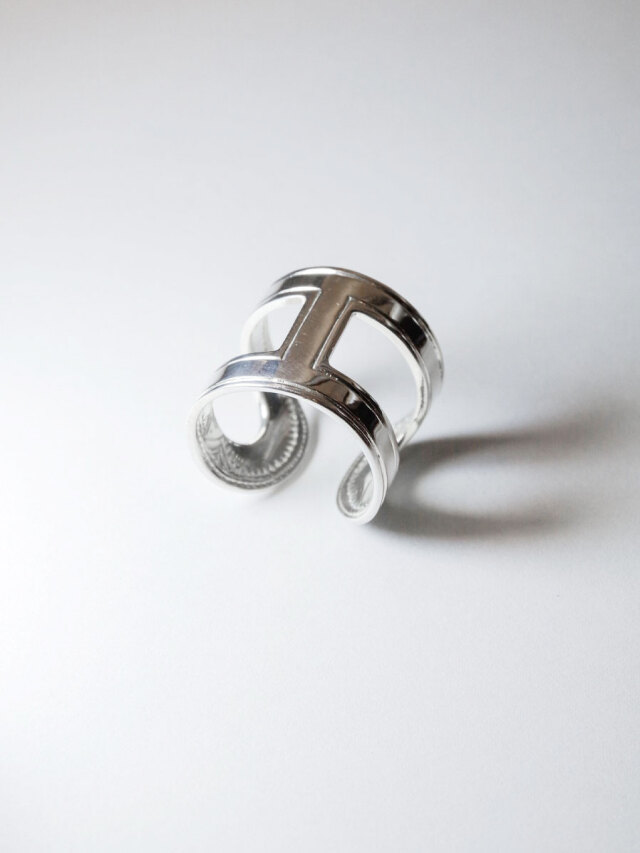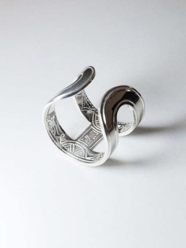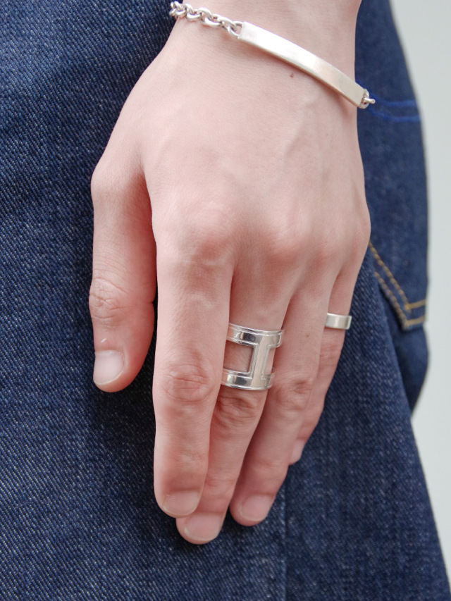 鎖形状に肉抜きされたデザインで軽やかな印象を備えたシルバーリング。上質な輝きを放つ鏡面仕上げの表に対して、内側には細かい彫刻が施され職人のこだわりを感じさせます。C型でどちらをフロント側にしてもOKなので、気分やスタイリングに応じて見せ方をアレンジ出来ます。ガーデンオブエデンらしいモダン×アンティークのテイストが融合された作品です。