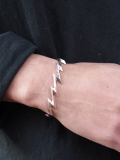 輝きの美しいシルバー925素材を使用したバングル。イナズマ型の他にはあまり無いデザイン性がかっちりとした印象を和らげ、遊び心をプラスしています。 他のアクセサリーとの相性も良く、セットで使うことにより存在感を際立たせるのもおすすめ。見た目とは裏腹に、どんなスタイルとも比較的合わせやすい汎用性の高さも魅力の一品です。