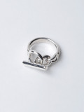 輝きの強いシルバーをふんだんに使用した一風変わったデザインのリング。主役となるT字状のバーは、もともとは中世ヨーロッパで懐中時計をジャケットのボタンホールにぶら下げるため考案されたディテール。そんなヨーロッパのアンティークデザインをリングに落とし込んだ遊び心あるアイテムです。BR>BR>
