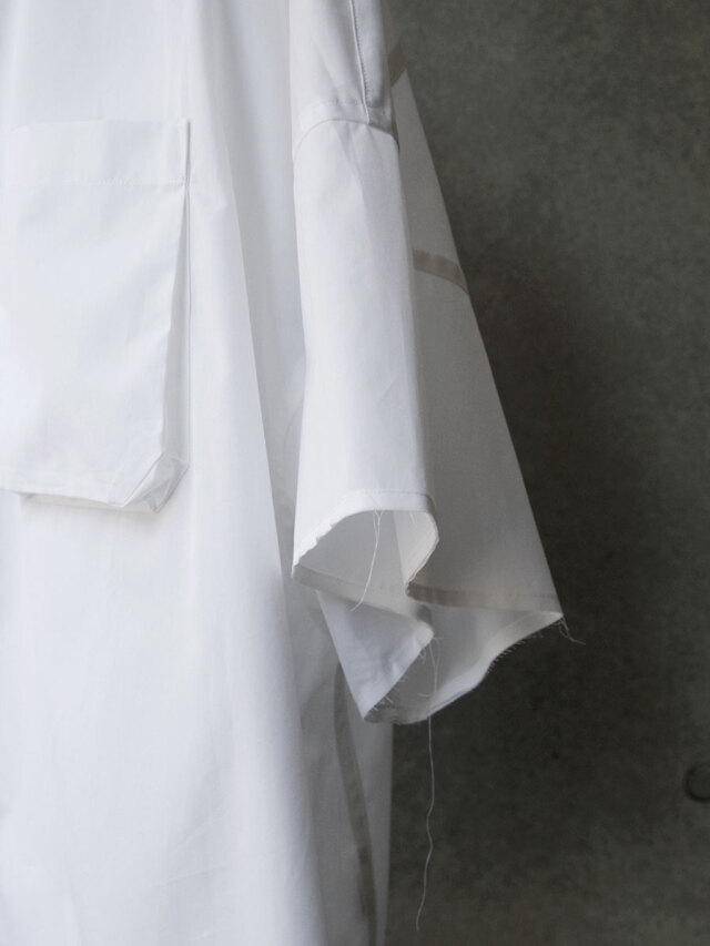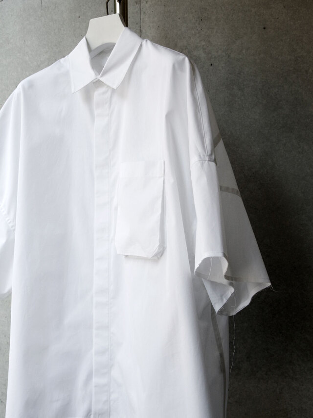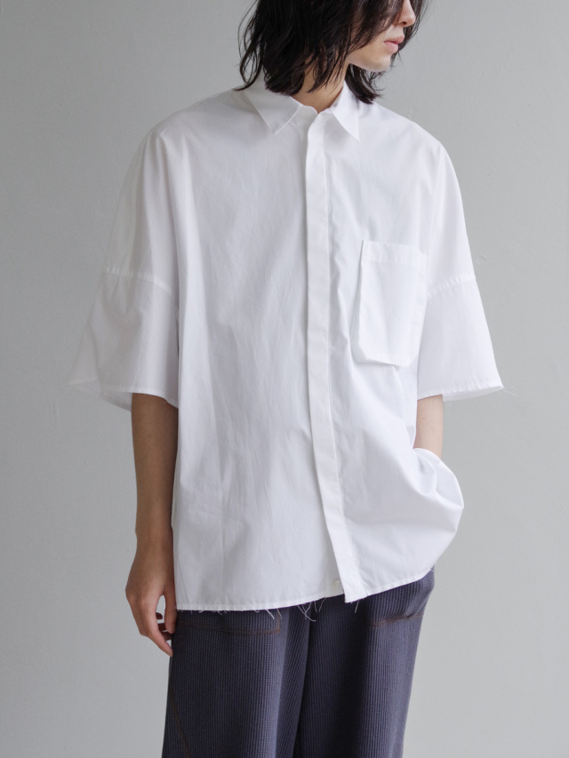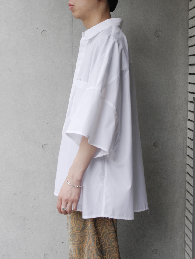 レギュラーシルエットのシャツを11XLというサイズに設定し、丈感を調整して仕上げられたハーフスリーブシャツ。