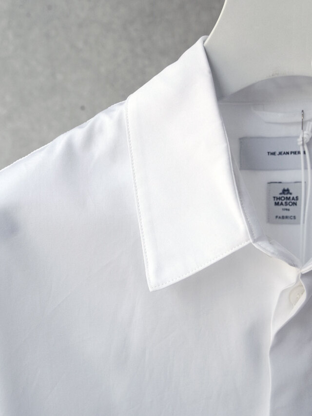 素材にはイギリスで1796年に創業されたTHOMAS MASON社のシャツ地を採用。タテヨコに100/2の超長綿を高密度に織り上げ、シルケット加工することにより高級感を持たせています。