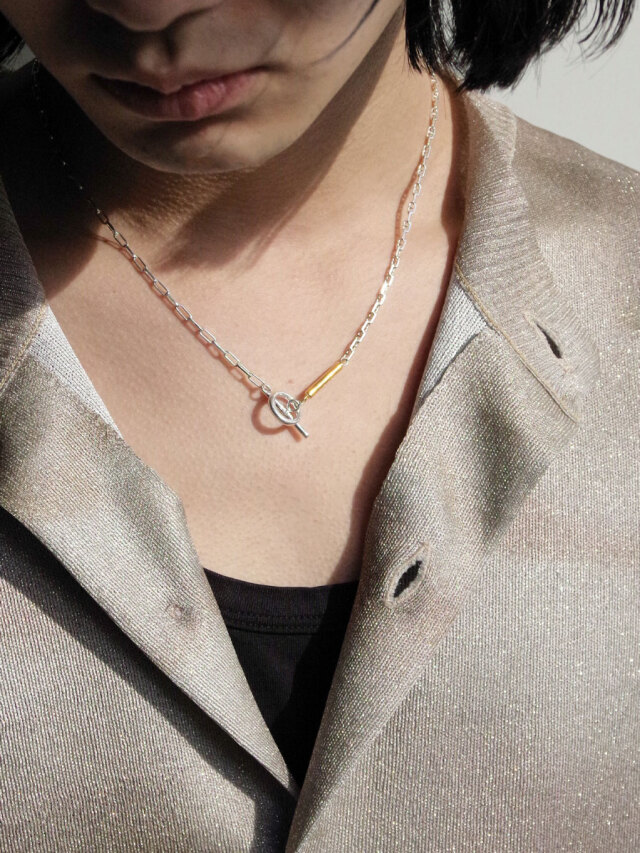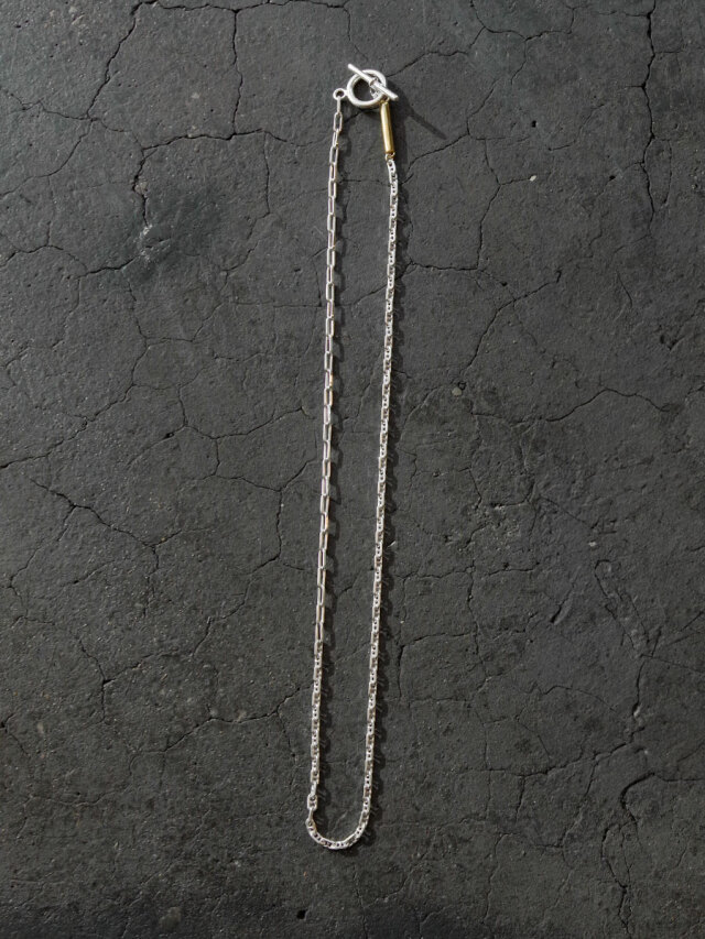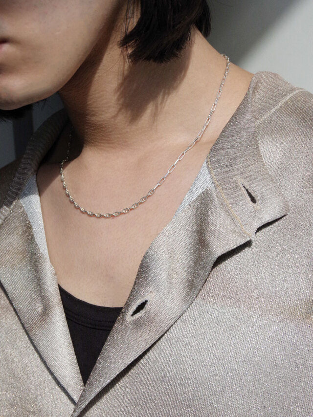 美しく磨き上げられたシルバー925素材を使用し、2種類の細身のチェーンで構成されたネックレス。スタイリングを邪魔しない絶妙な存在感で重ね付けもしやすく、シーズン問わず活用しやすい一品です。