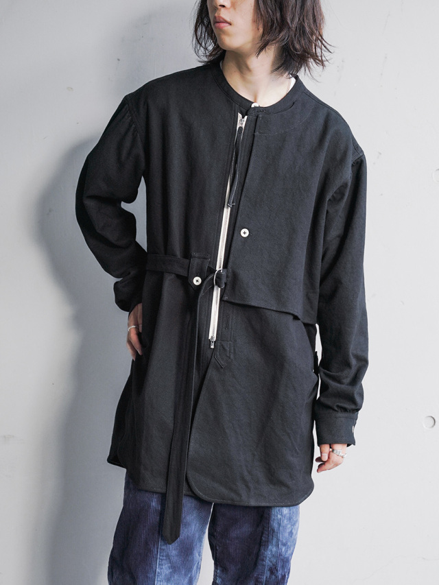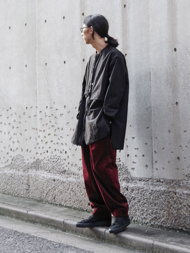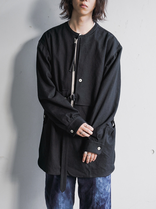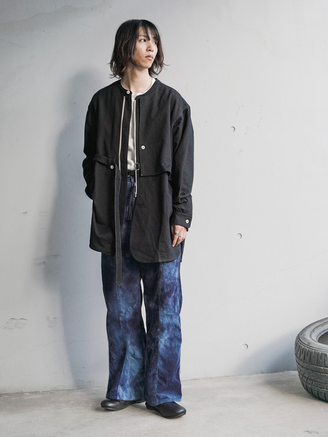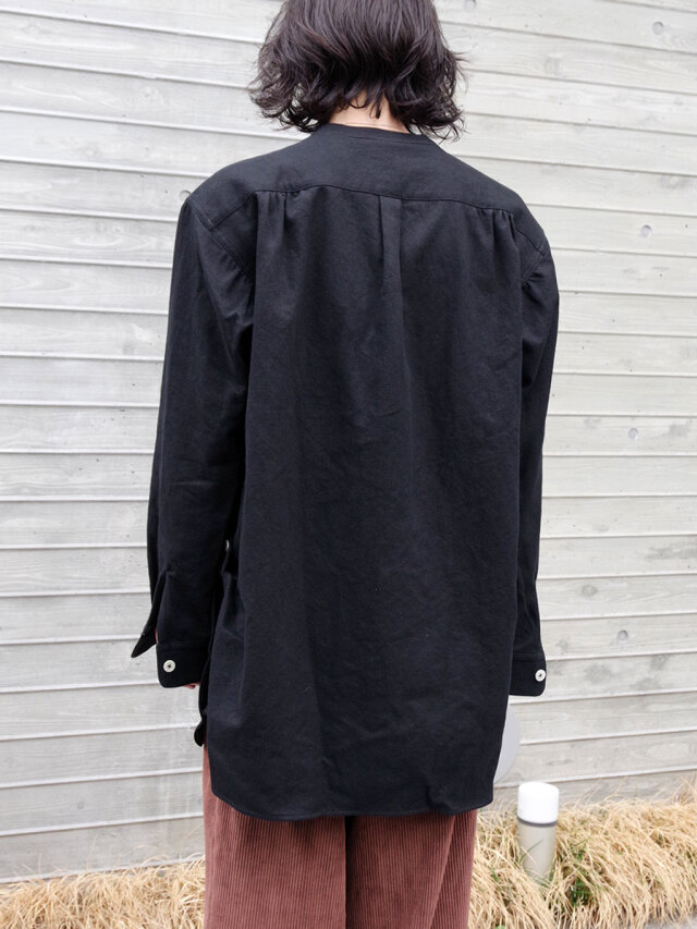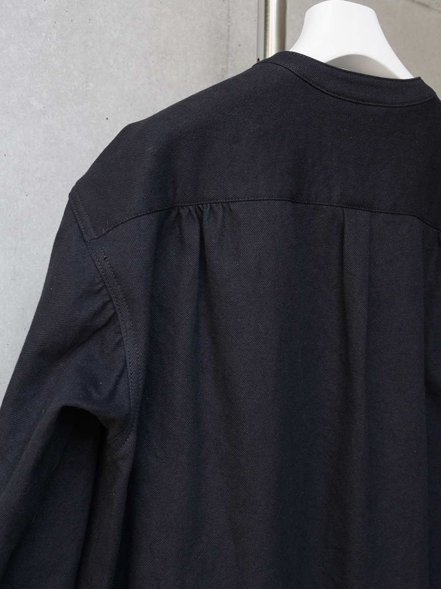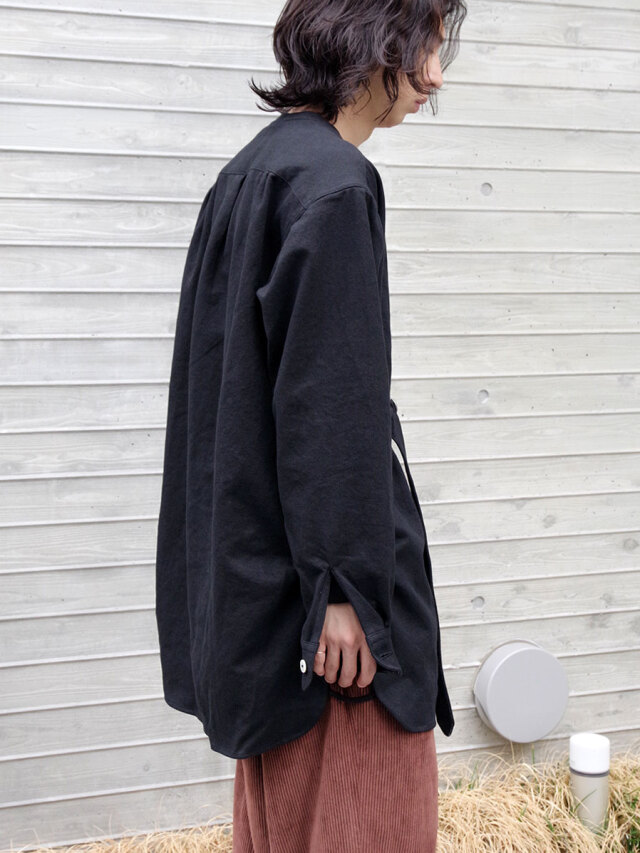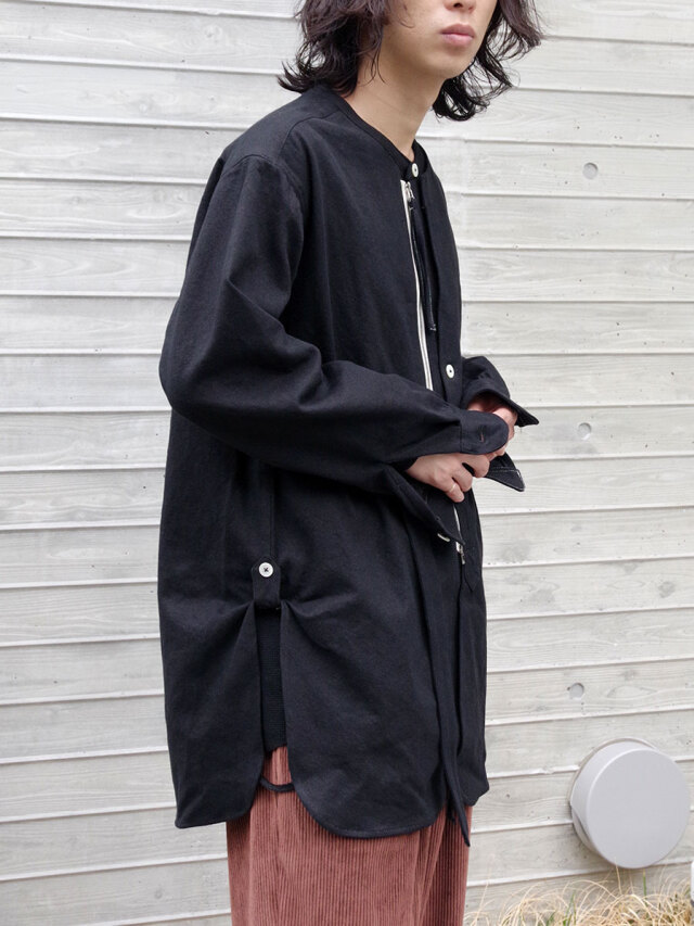 ナチュラルなスラブ感を表現するヘンプとコットンの生地を採用して製作されたスタンドカラーシャツ。適度な生地の厚みながらしなやかさと柔らかさがあり、肌馴染みも良さも特徴の1つです。