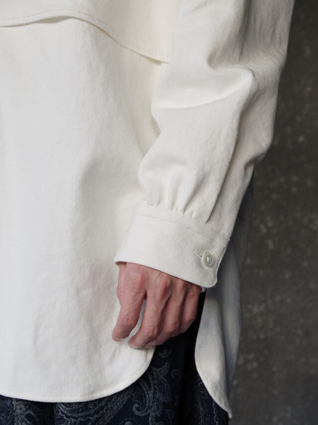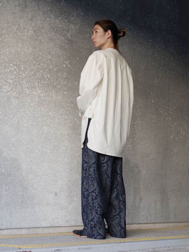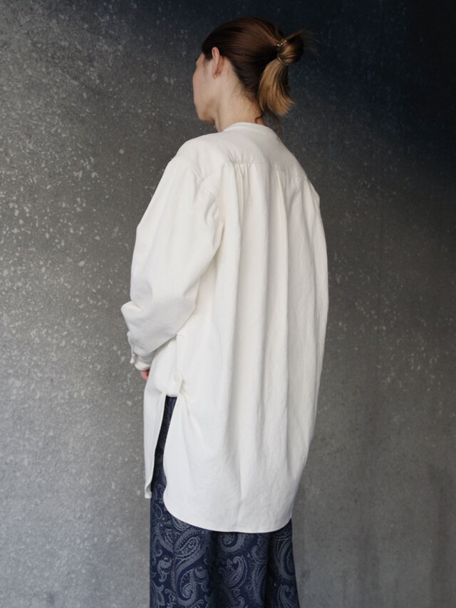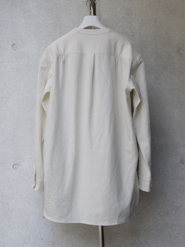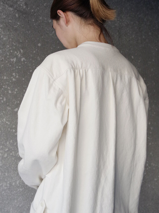 ナチュラルなスラブ感を表現するヘンプとコットンの生地を採用して製作されたスタンドカラーシャツ。適度な生地の厚みながらしなやかさと柔らかさがあり、肌馴染みも良さも特徴の1つです。