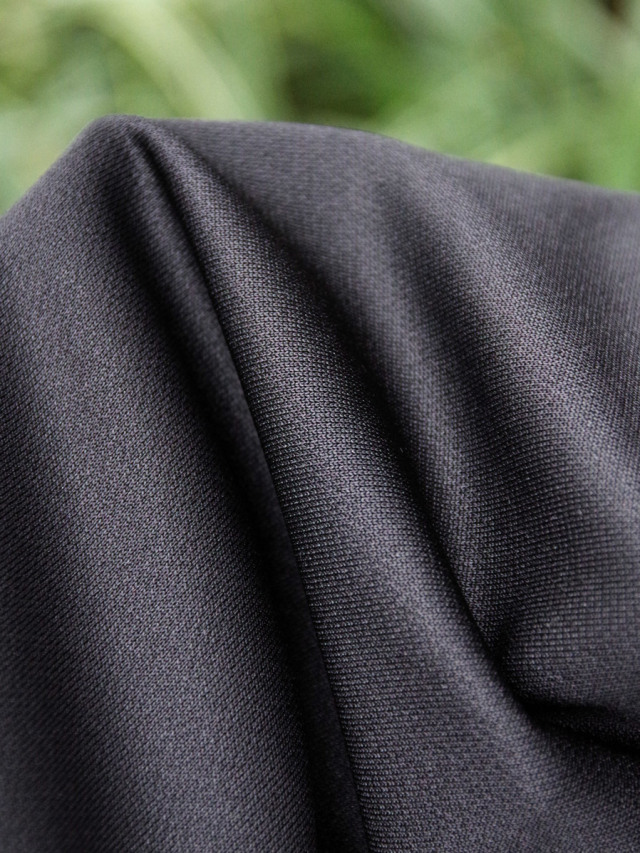 国内では取り扱いがなく、フランスから直接取り寄せたデッドストックの55mm幅太テープが目を引きます。本作ではさらっとした清涼感あるジャージ素材を採用。適度な厚みでよりラフな表情を作り、ストレスのない快適な履き心地をご体感していただけます。