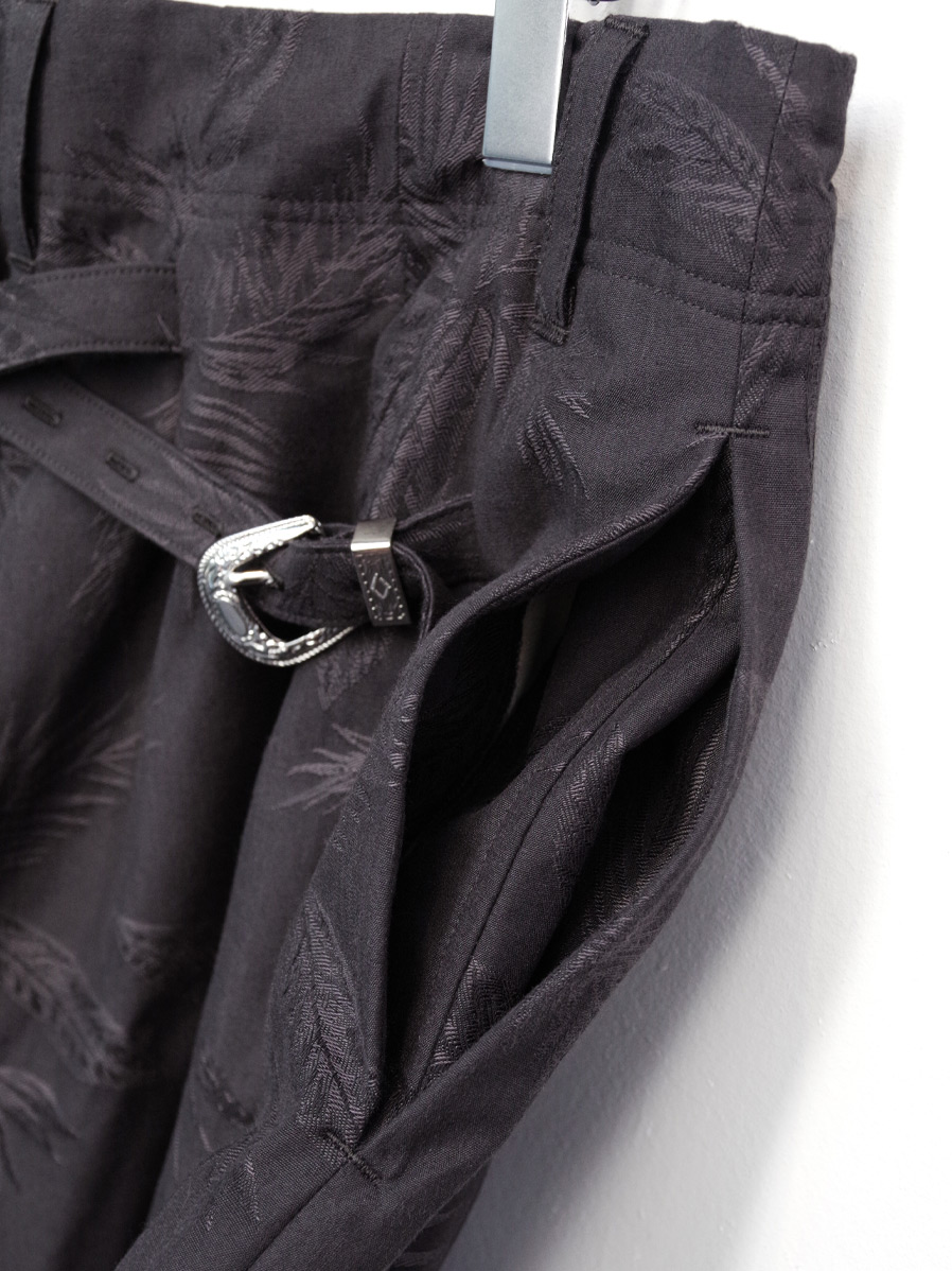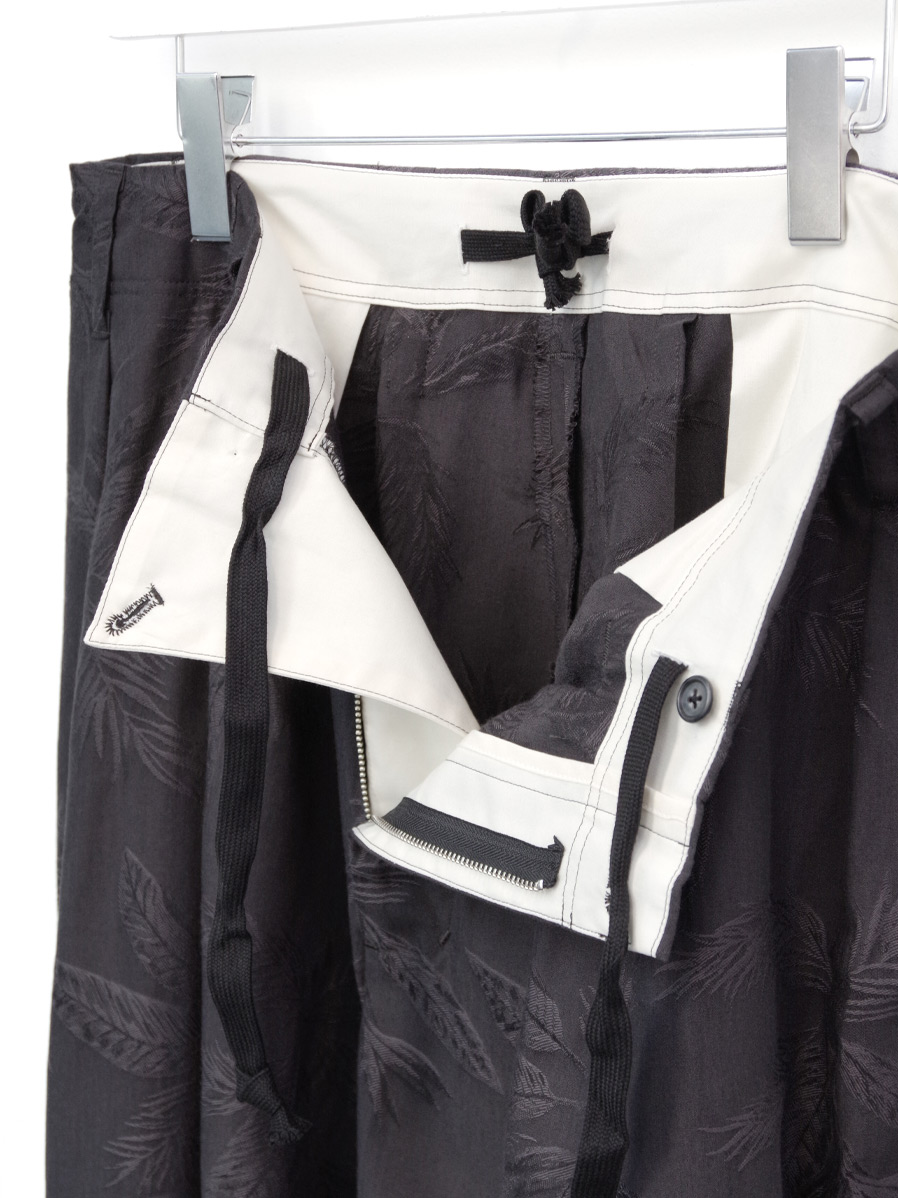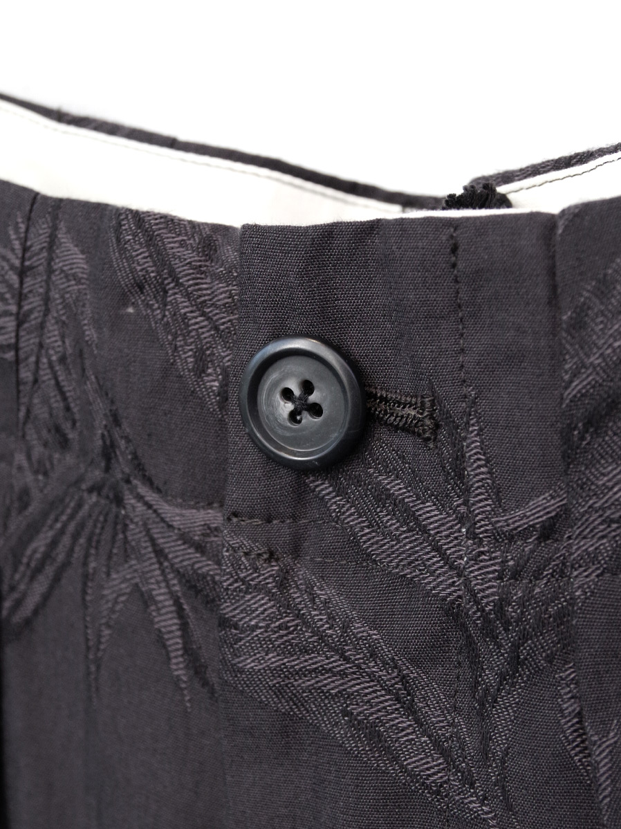 今シーズンはボタニカル柄がジャガード織りで表現された印象的なテキスタイルを採用。コットンベースにレーヨンをブレンドした生地はくったりと柔らかく上品な落ち感があり、夏にも嬉しい軽やかな履き心地となっています。