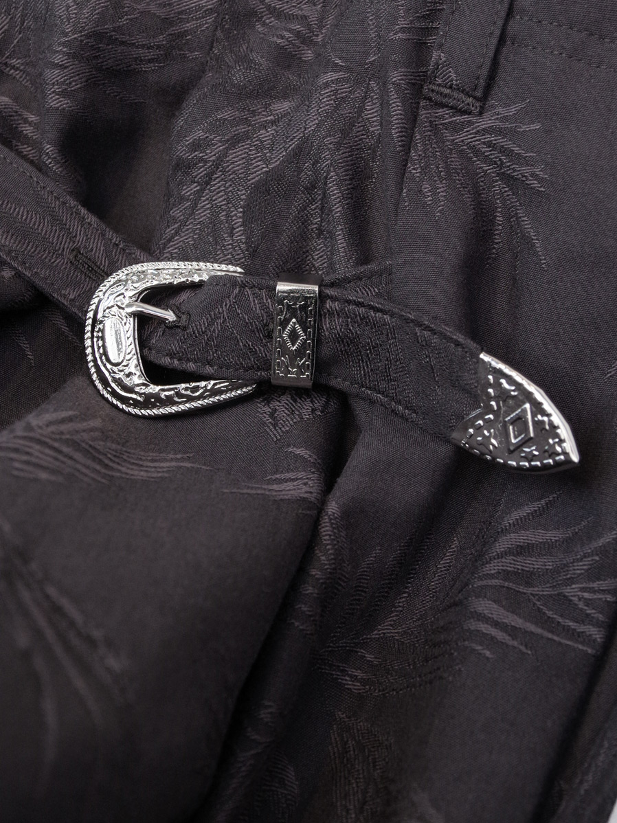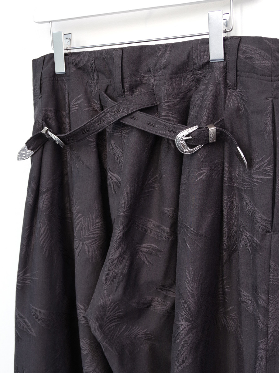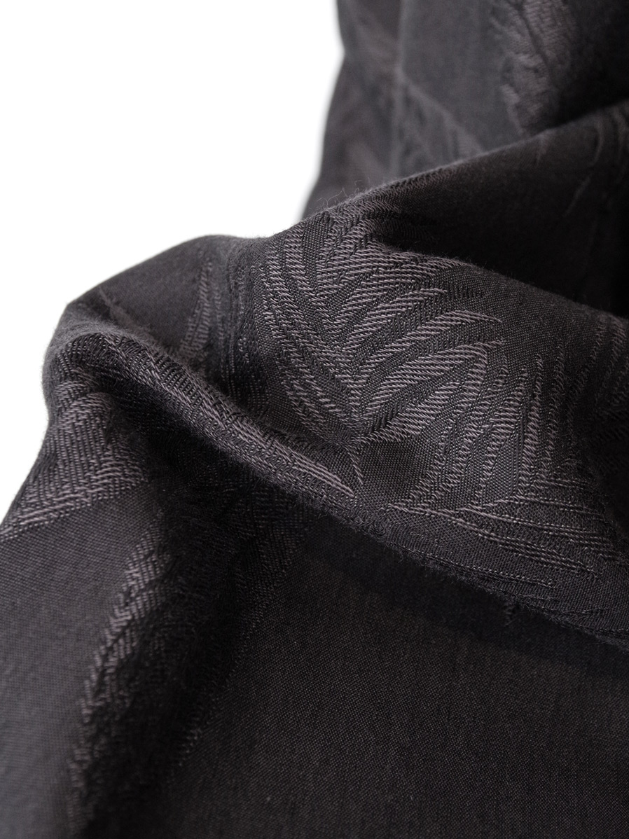 今シーズンはボタニカル柄がジャガード織りで表現された印象的なテキスタイルを採用。コットンベースにレーヨンをブレンドした生地はくったりと柔らかく上品な落ち感があり、夏にも嬉しい軽やかな履き心地となっています。