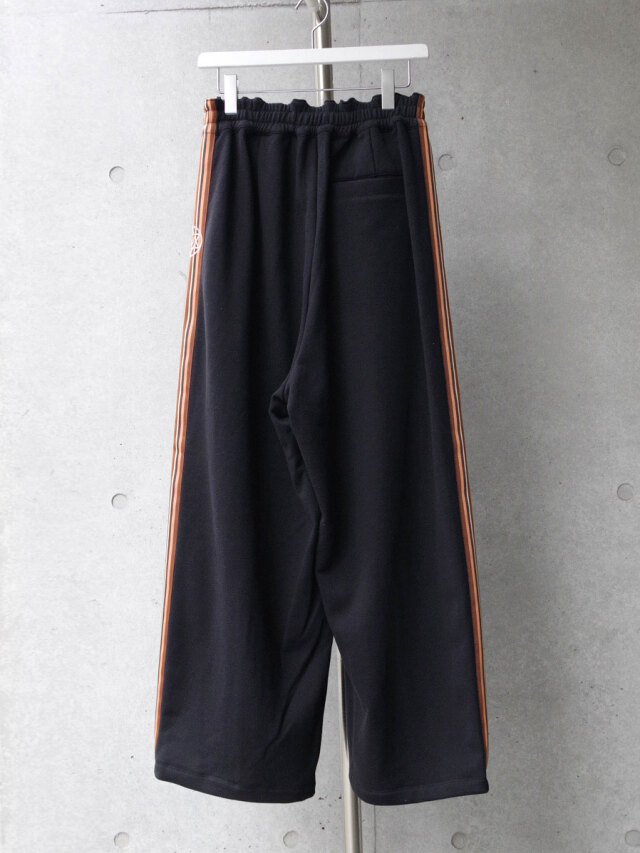 国内では取り扱いがなく、フランスから直接取り寄せたデッドストックの55mm幅太テープが目を引くワイドトラックパンツ。本作ではカジュアルに裏毛のスウェット素材を採用。適度な厚みでよりラフな表情を作り、ストレスのない快適な履き心地をご体感していただけます。