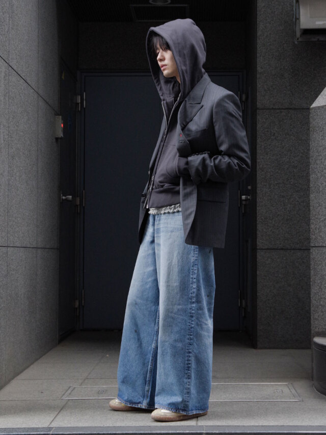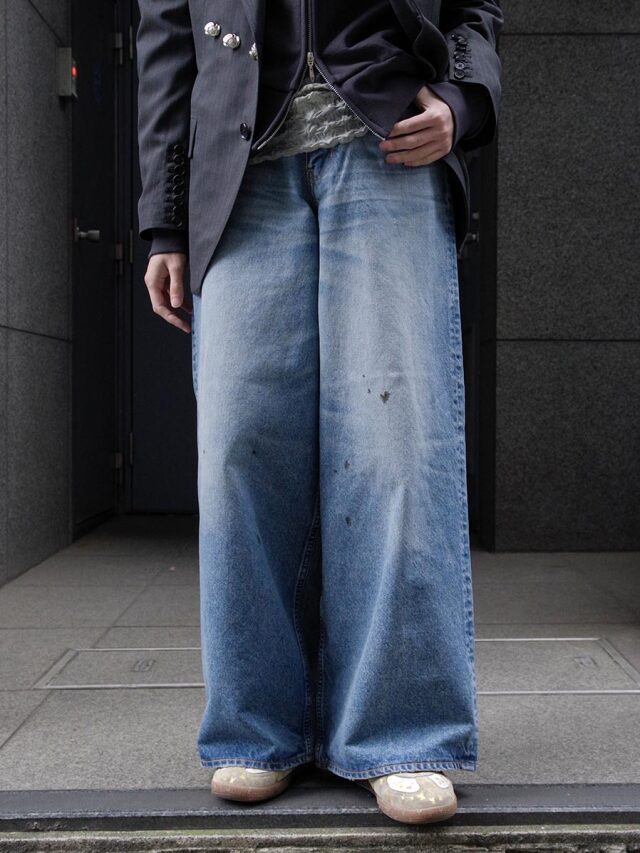 ブランドを代表するシグネチャーとも言えるバギーシルエットを採用し、迫力のあるワイドさを持ちながらも、全体のバランスが美しく整えられています。