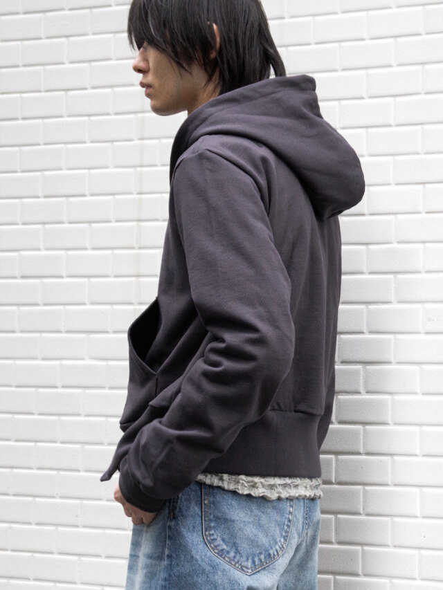 MASU BOYSラインより展開される、ショート丈が新鮮なスウェットフーディ。