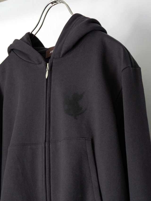 表地には柔らかく肌触りの良い裏毛素材を使用し、快適な着心地と落ち着いた表情を両立しています。スウェットでありながら、ラフになりすぎない佇まいが魅力です。
