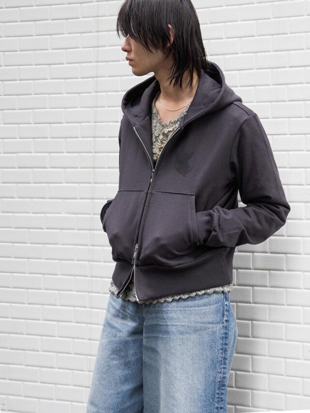 The compact body and cropped length create a distinctive balance. It pairs particularly well with the brand’s wide pants, adding a sense of contrast and definition to styling.