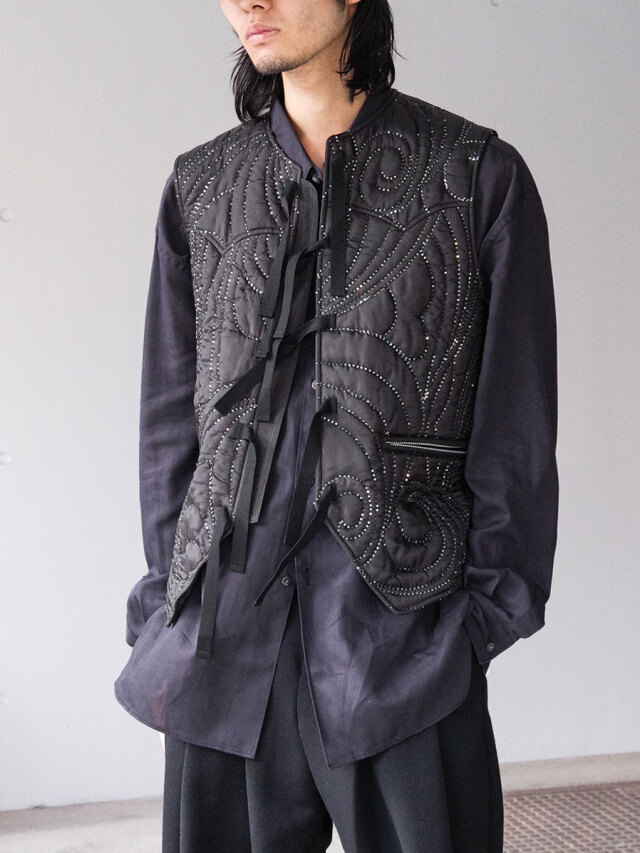 Equally versatile as an inner layer or a standalone statement piece, this vest brings unique depth to any seasonal wardrobe.