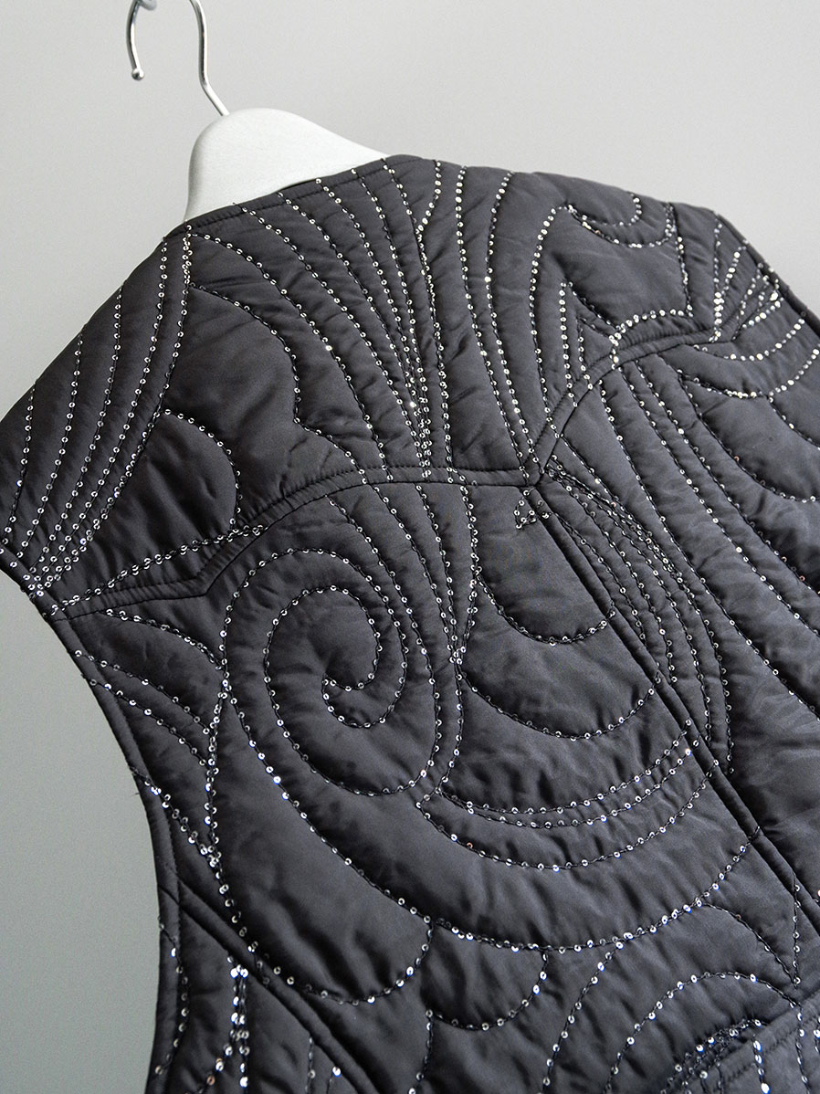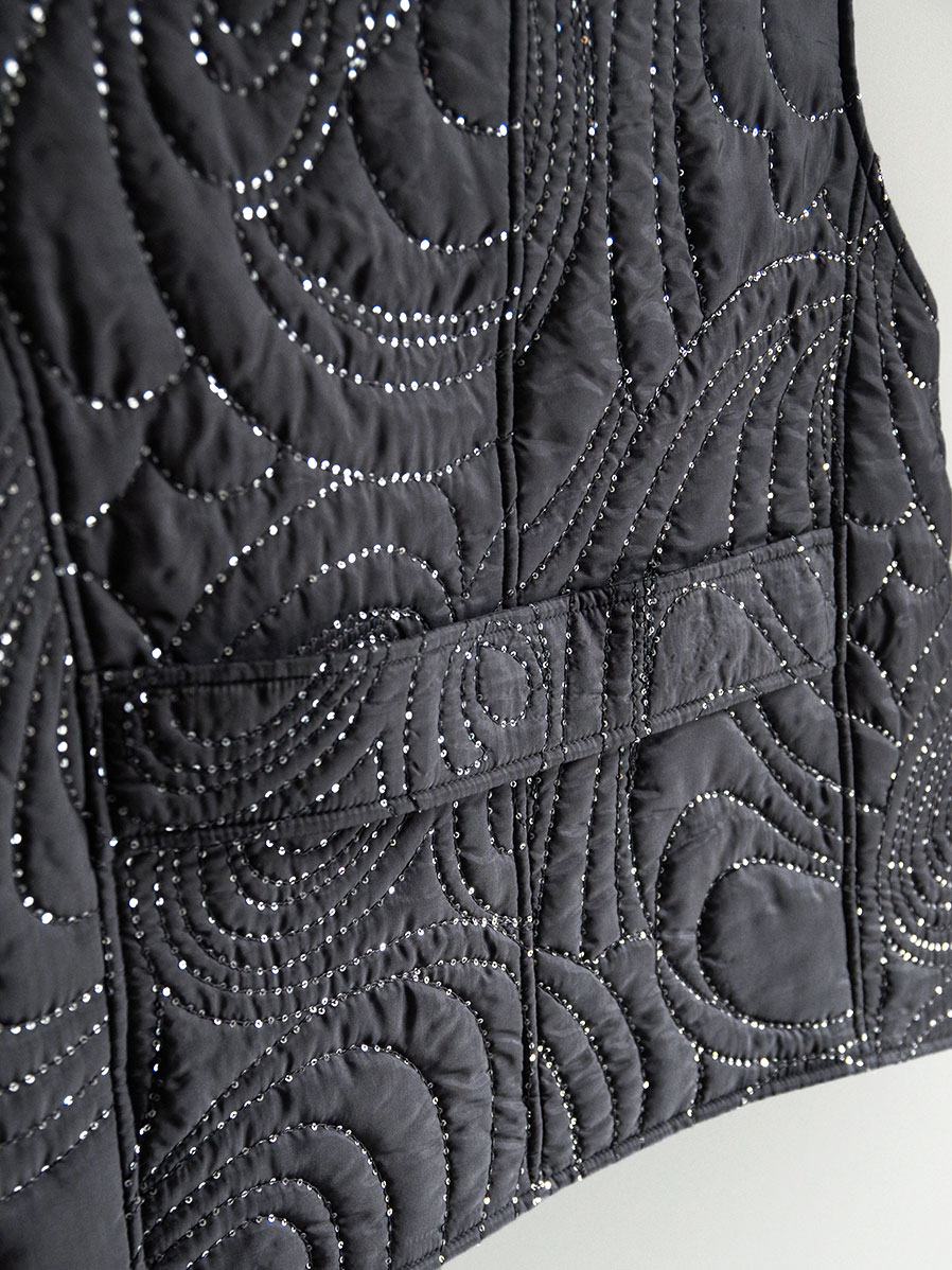 A quilted vest defined by its bold all-over pattern and subtle elegance.