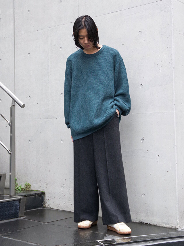 同素材のジャケットとのセットアップはもちろん、単体でもスタイリングを完成させる存在感を発揮。定番としての安心感と、ブランドの飽くなき探究心が宿る一本です。