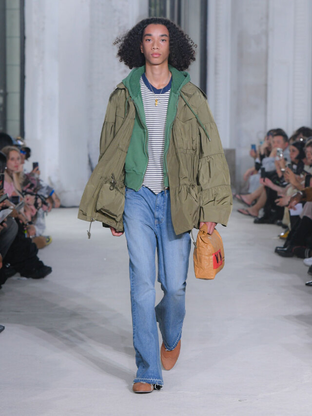 The shadows that are created every time the jacket flutters in the wind sublimate the robust atmosphere of military wear into an elegant and modern mood.