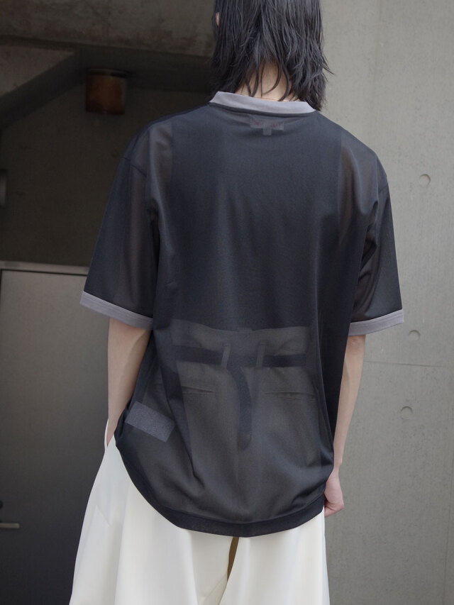 The design with the body, sleeves and hem switched adds an accent like a ringer T-shirt. You can freely layer it with cut and sewn tops and shirts by taking advantage of the sheer look.