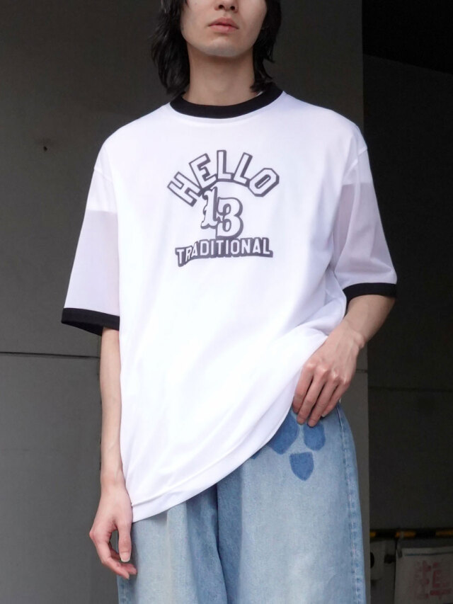 The design with the body, sleeves and hem switched adds an accent like a ringer T-shirt. You can freely layer it with cut and sewn tops and shirts by taking advantage of the sheer look.
