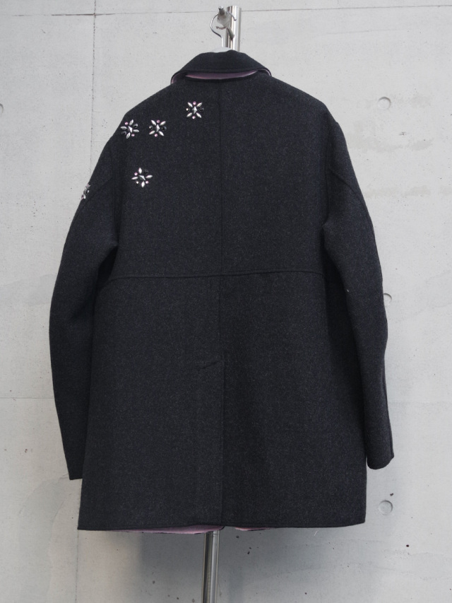 表と裏で色が異なるダブルフェイスの厚みのあるメルトンを使用。