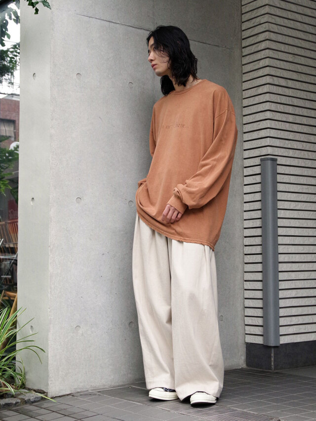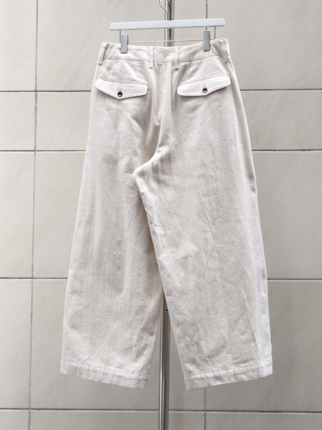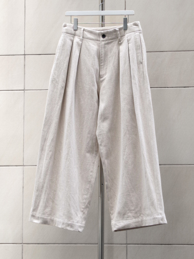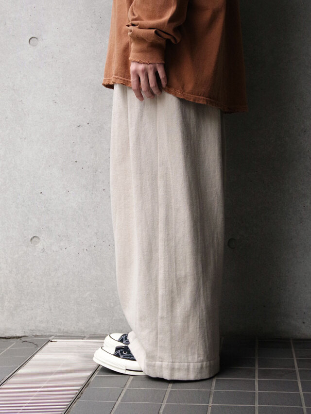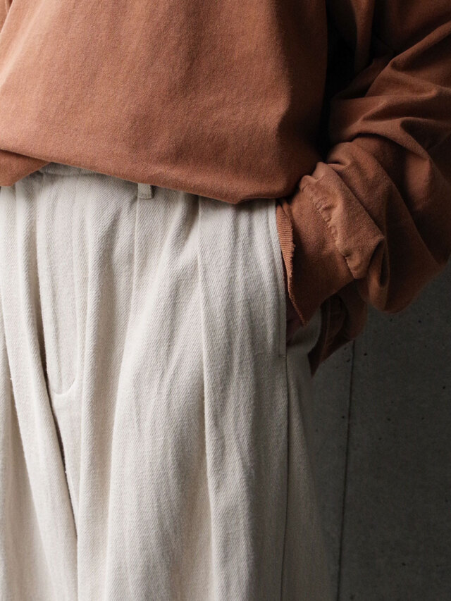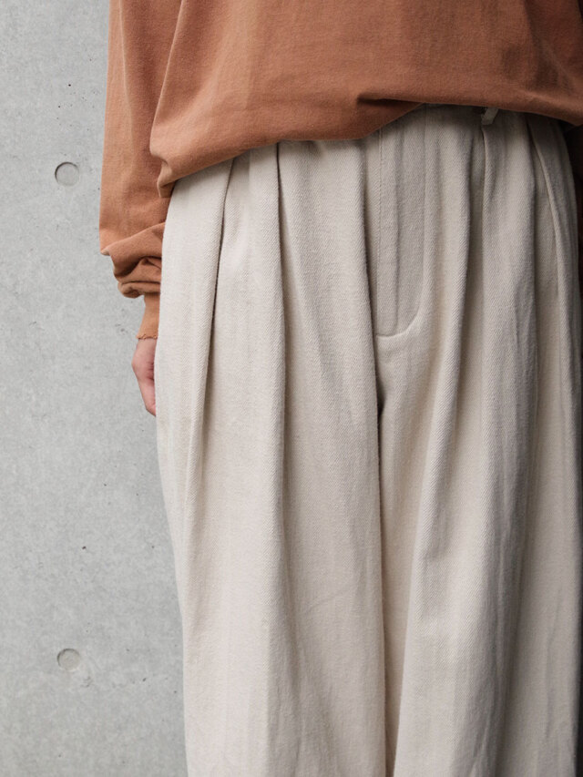 オーガニックコットンを素材に使用したナチュラルなタッチが特徴の2タックワイドパンツ。