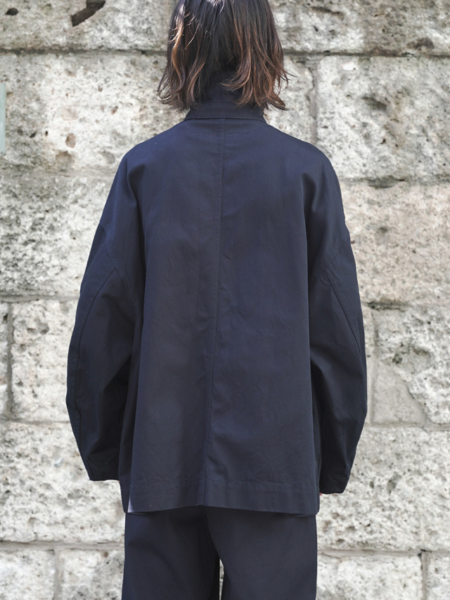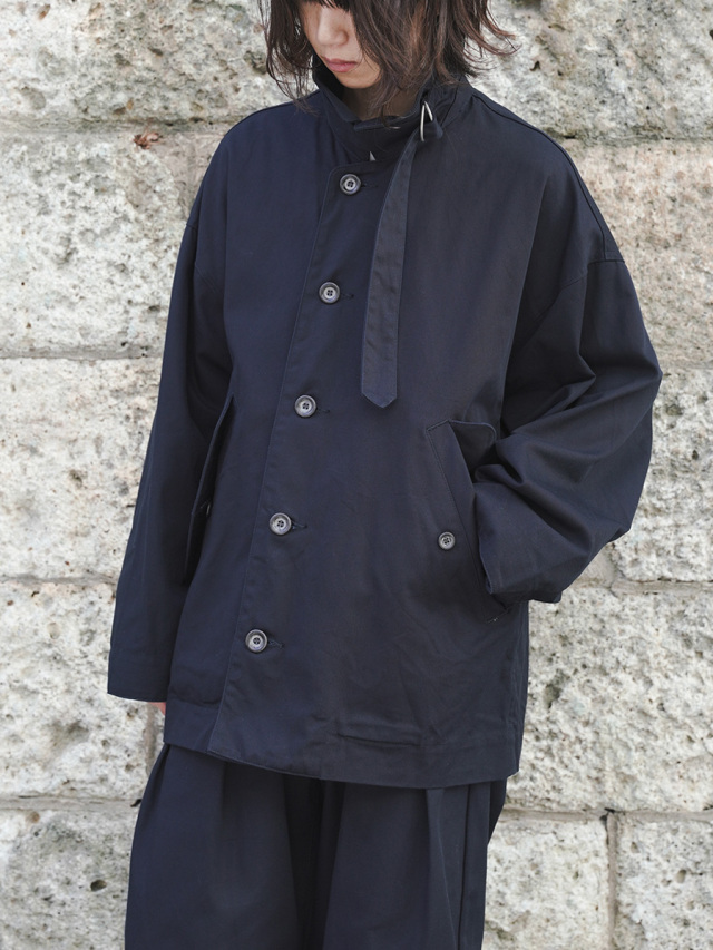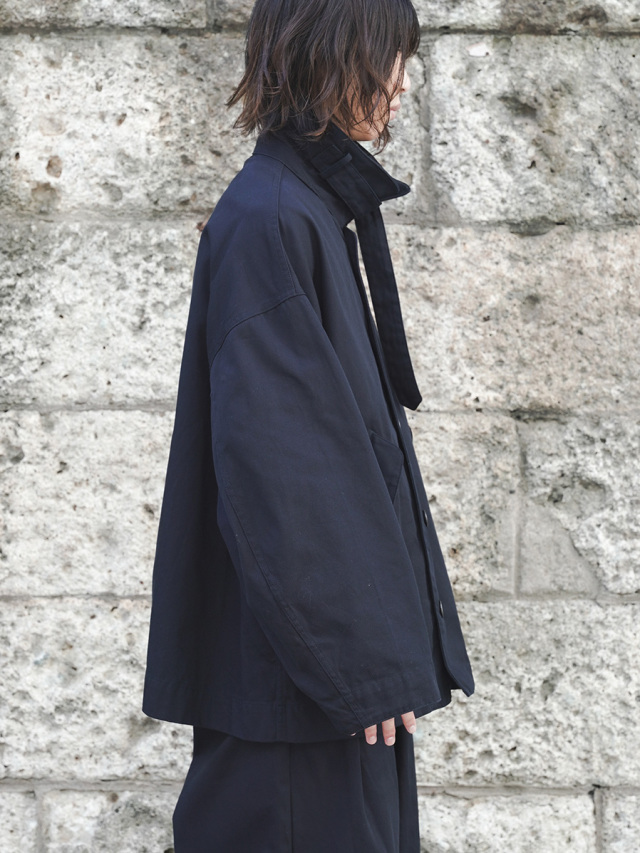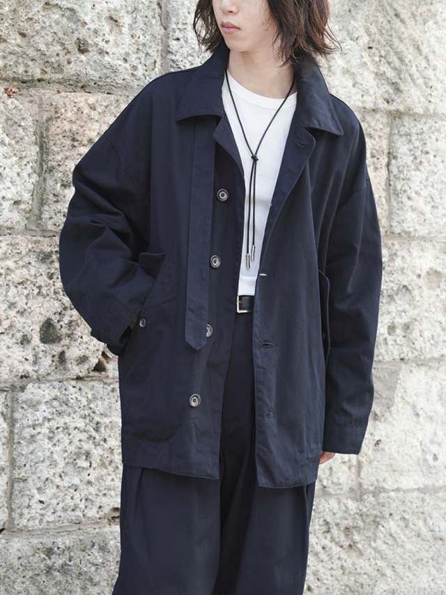 ドロップショルダーでゆったりとした着心地のオーバーサイズジャケットは、ミリタリーとワークのテイストを融合させつつ、品格あるコートのエッセンスもブレンド。そのバランスの良さは、あらゆるコーディネートにマッチする高い汎用性を与えています。
