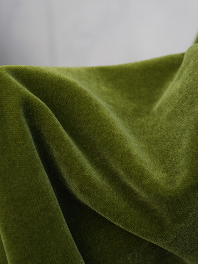 一般的なコットン100%のベルベット生地では表現されないドレープ感が見られるのが特徴的です。