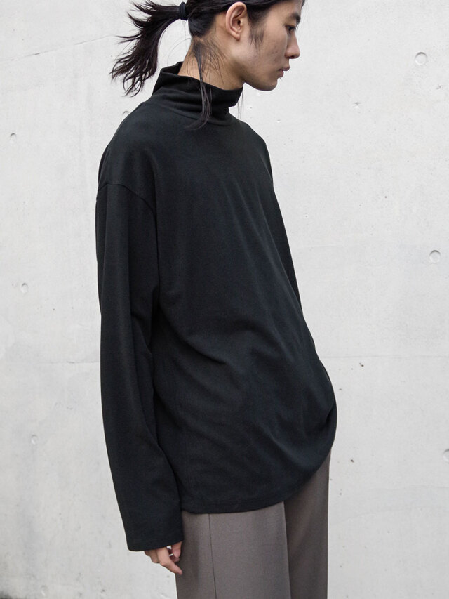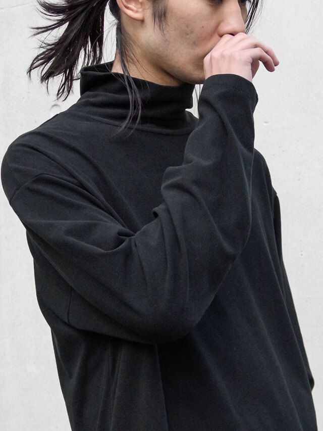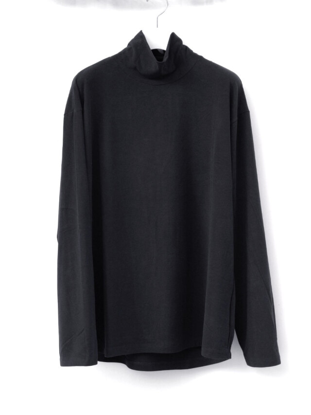 吸湿性と発熱特性を備えた機能素材を使用し製作されたタートルネックカットソー。